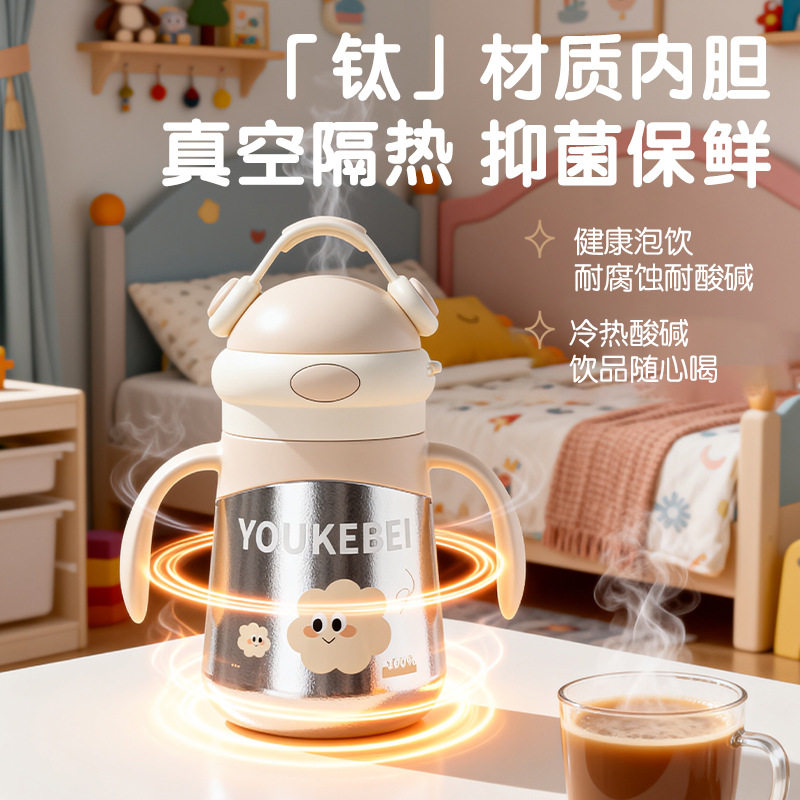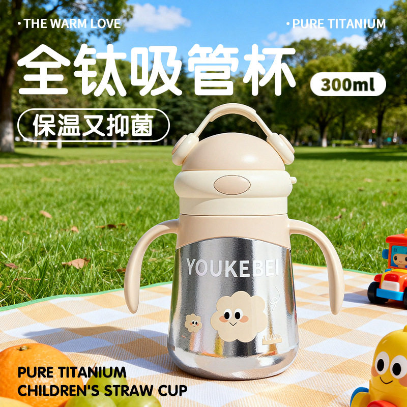 📚 婴幼儿全钛保温杯儿童小月龄外出吸管杯奶瓶防喷呛300ml宝宝学饮