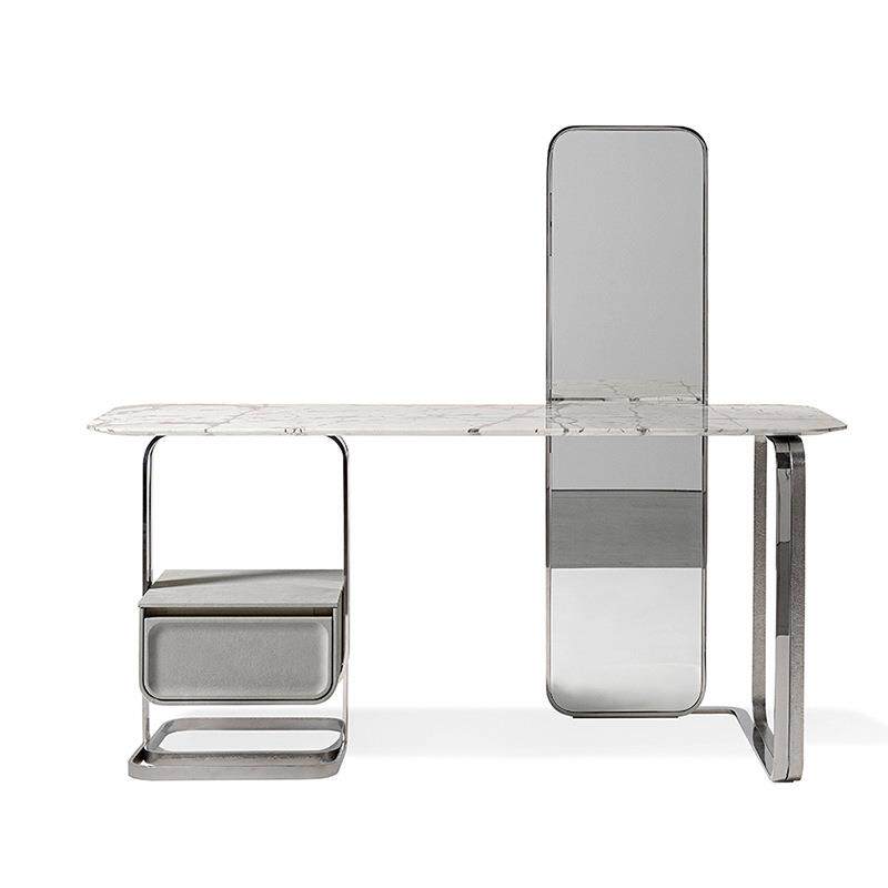 📚 轻奢极简cornelio天然大理石梳妆台创意设计卧室镜装一体化妆桌