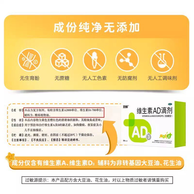 📚 双鲸维生素AD滴剂50粒(一岁以上)预防治疗维生素AD缺乏非鱼肝油