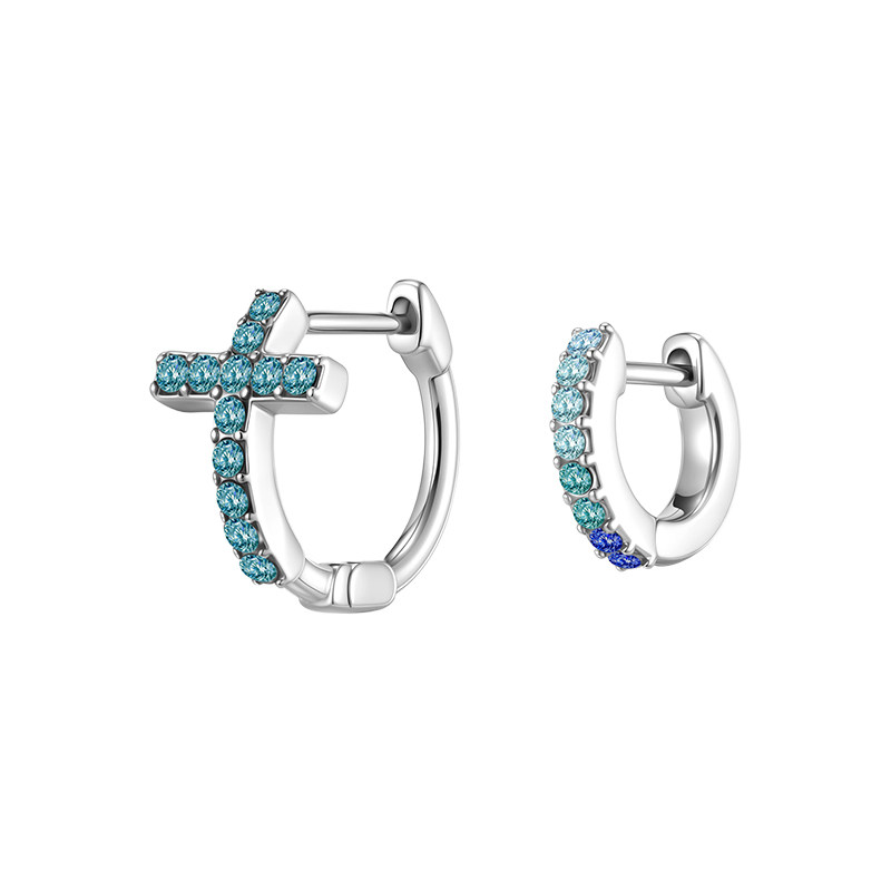 📚 不对称十字架蓝色锆石钛钢圈圈耳环女小众高级感新款爆款耳钉耳饰