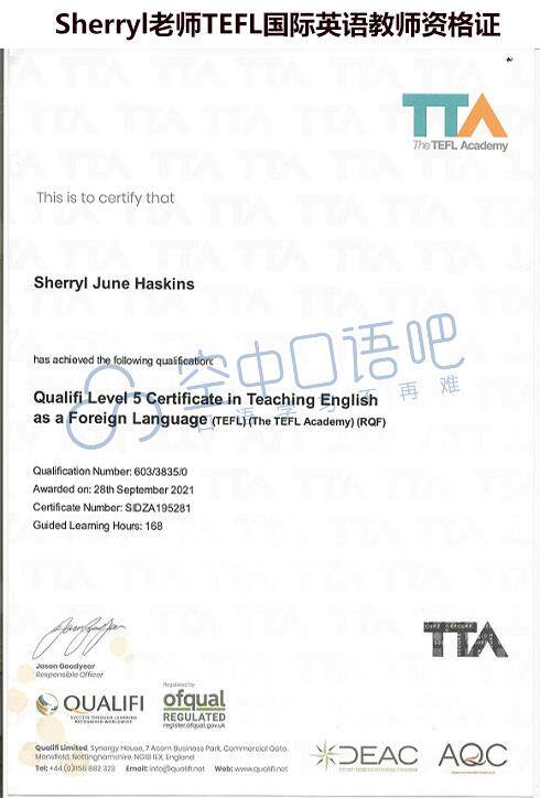 📚 K英国外教Sherryl外教口语陪练英语口语1对1网课25分TEFL教师资格