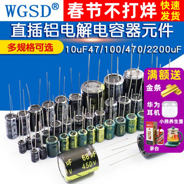 📚 直插铝电解电容器元件高频大全35/25/50v/10uF47/100/470/2200uF