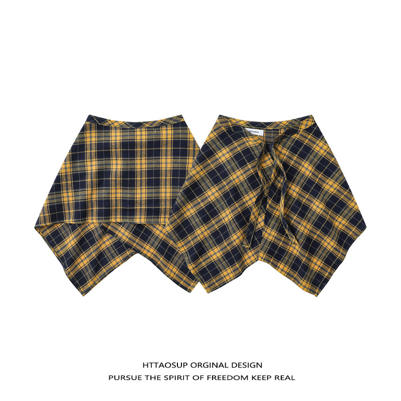 📚 HTTAOSUP彩色黄色格子屁帘女一片式系带黄格藏肉神器男下摆男生衫