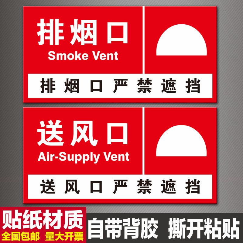 📚 消防手报按钮报警送风口标识排烟口严禁遮挡标志牌防水背胶贴纸