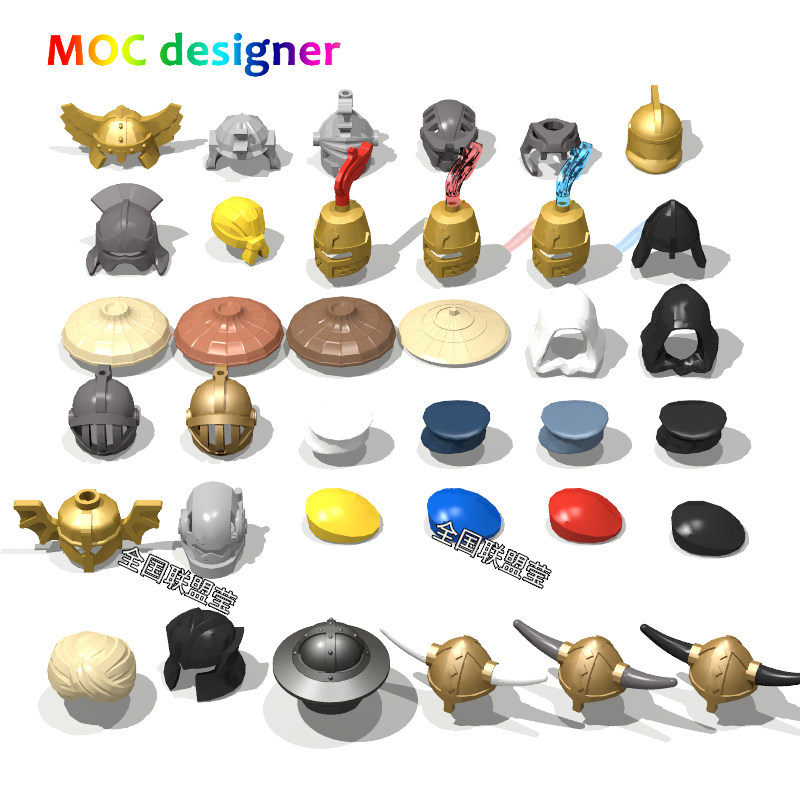 📚 MOC国产小颗粒积木中古人仔配件中国头盔斗笠帽子37款