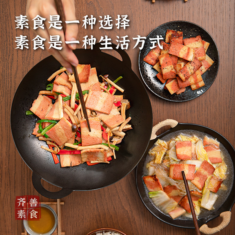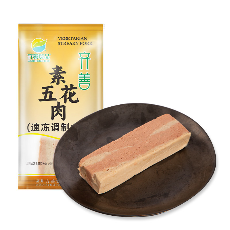 📚 冷冻齐善素食【素五花肉】佛家纯素肉食品大全旗舰店素零食素菜