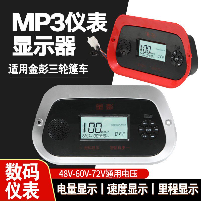 📚 适用金彭电动三轮棚车仪表显示器MP3收音机数码仪表48v60v72v通用