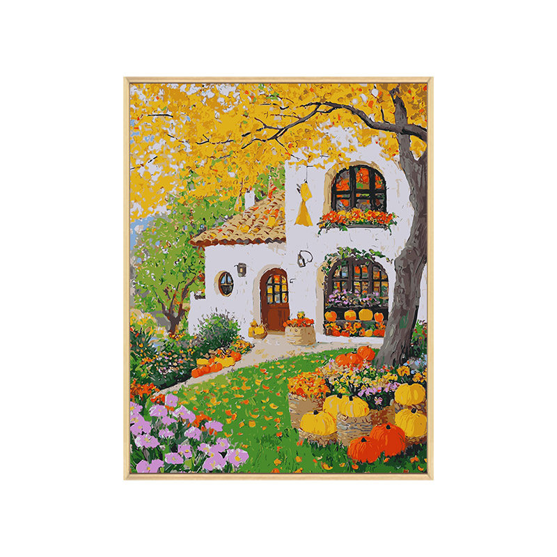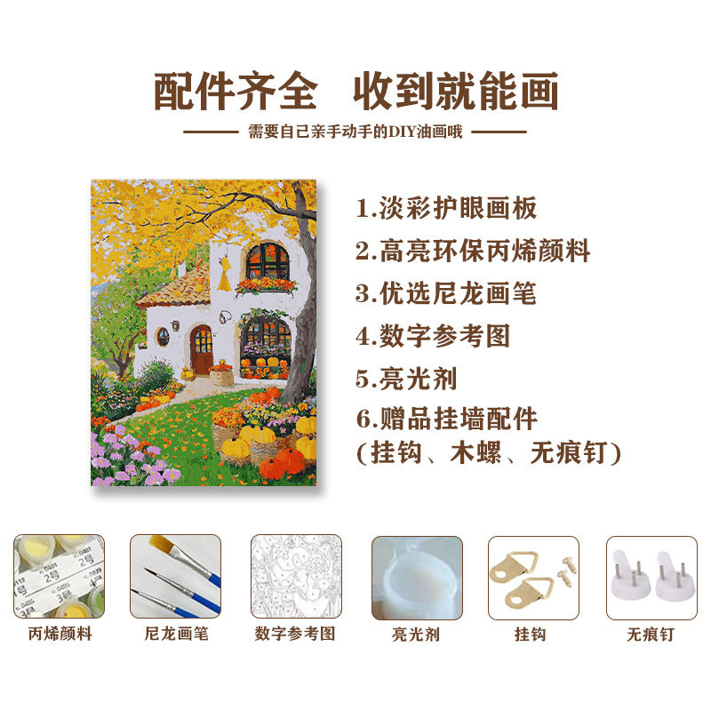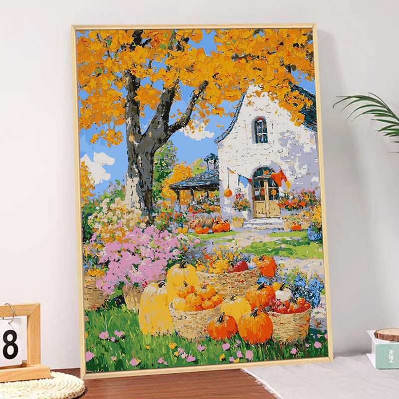📚 治愈秋日丰收风景diy数字油画填充手绘填色打发时间丙烯装饰挂画