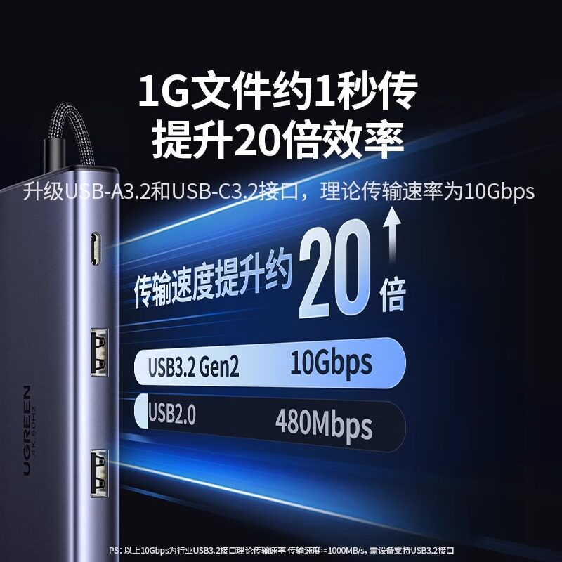 📚 ugreen绿联USB3.2拓展坞typec转gen2高速hub分线器10Gbps转换HDMI投屏显