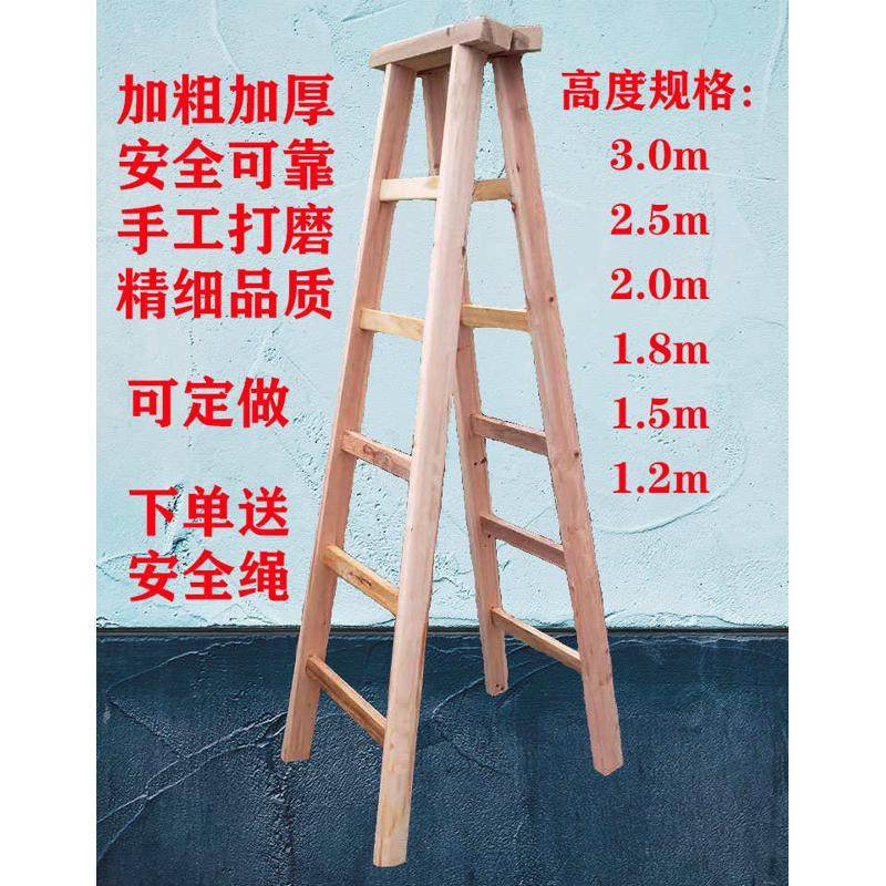 📚 人字梯木梯家用实木加厚梯子加强版折叠梯双侧梯水电梯工地装修梯