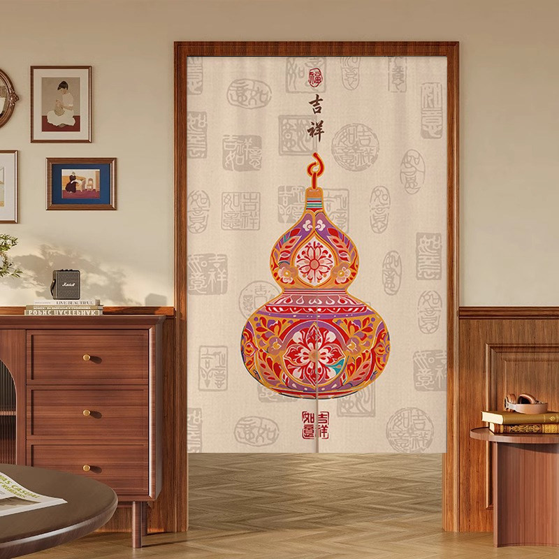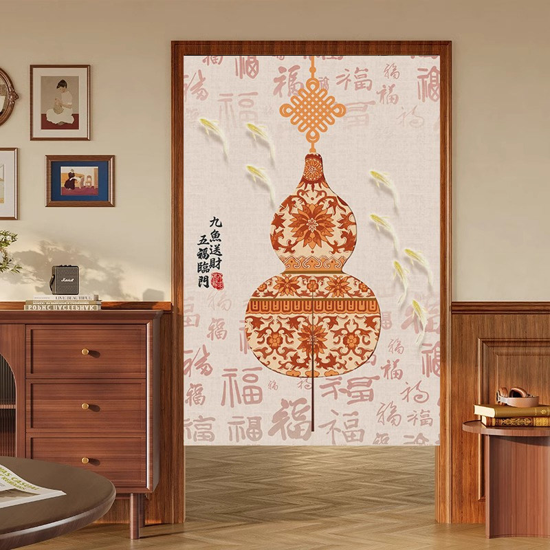 📚 新中式风水葫芦门帘穿堂风化解卧室门对门隔断帘高级感免打孔布帘