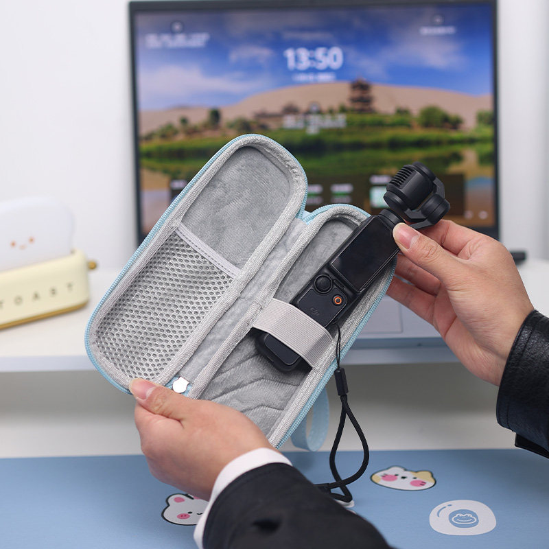 📚 适用于大疆DJI Pocket3便携收纳盒子 束带固定款加绒防摔缓震硬质壳缓震抗压皮质防水小巧便携款pk3收纳盒子