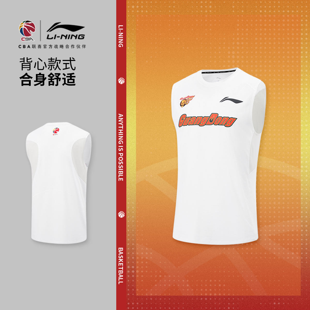 📚 李宁25-26赛季CBA广东宏远排湿速干背心男士官方新款针织运动服男