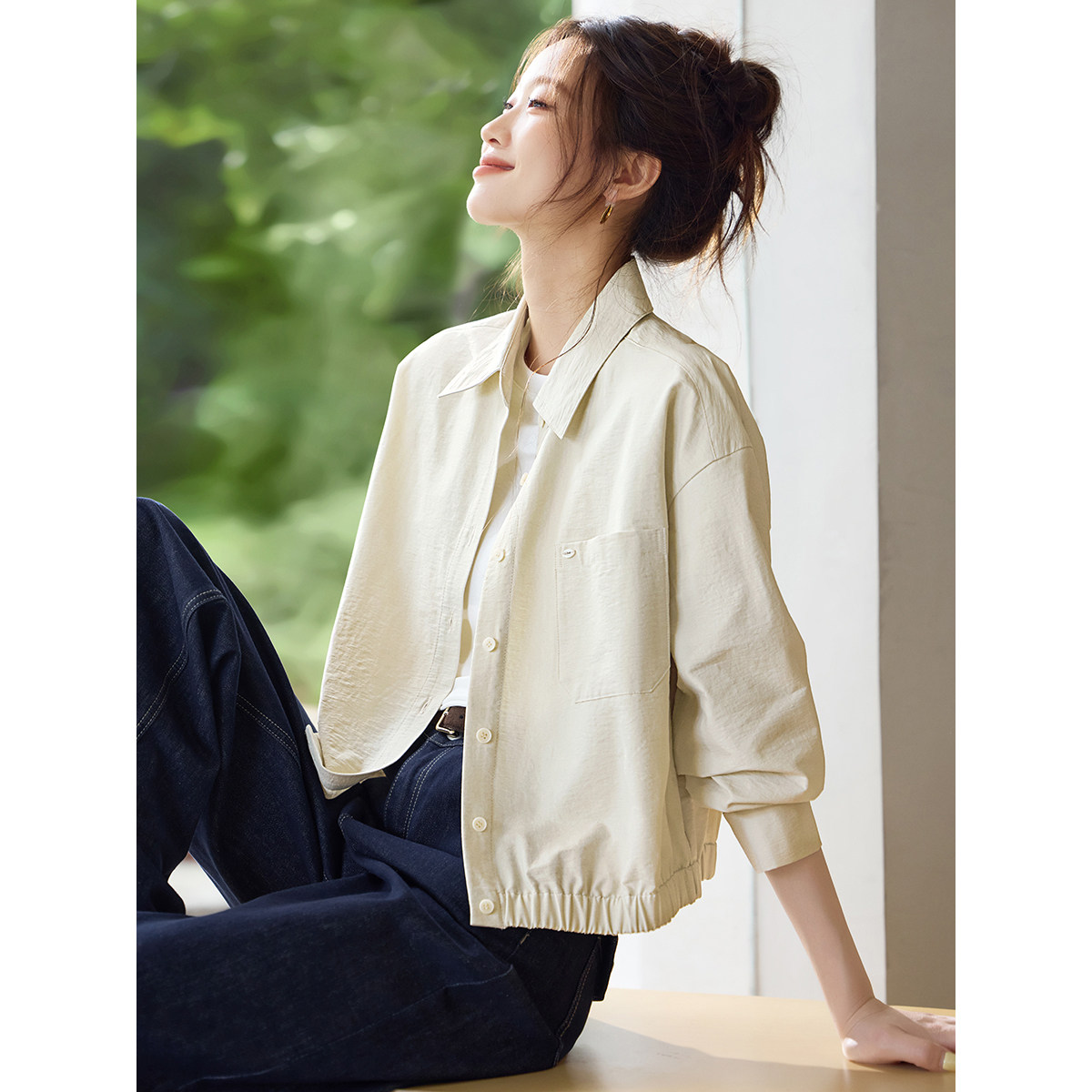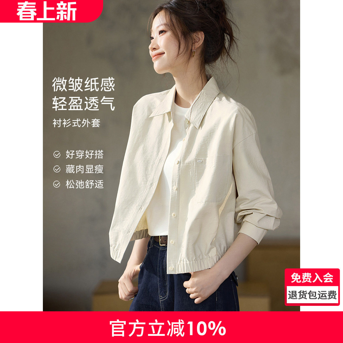 📚 沫晗依美纸感衬衫外套2026春季MIU风轻户外微皱肌理棉休闲短外套