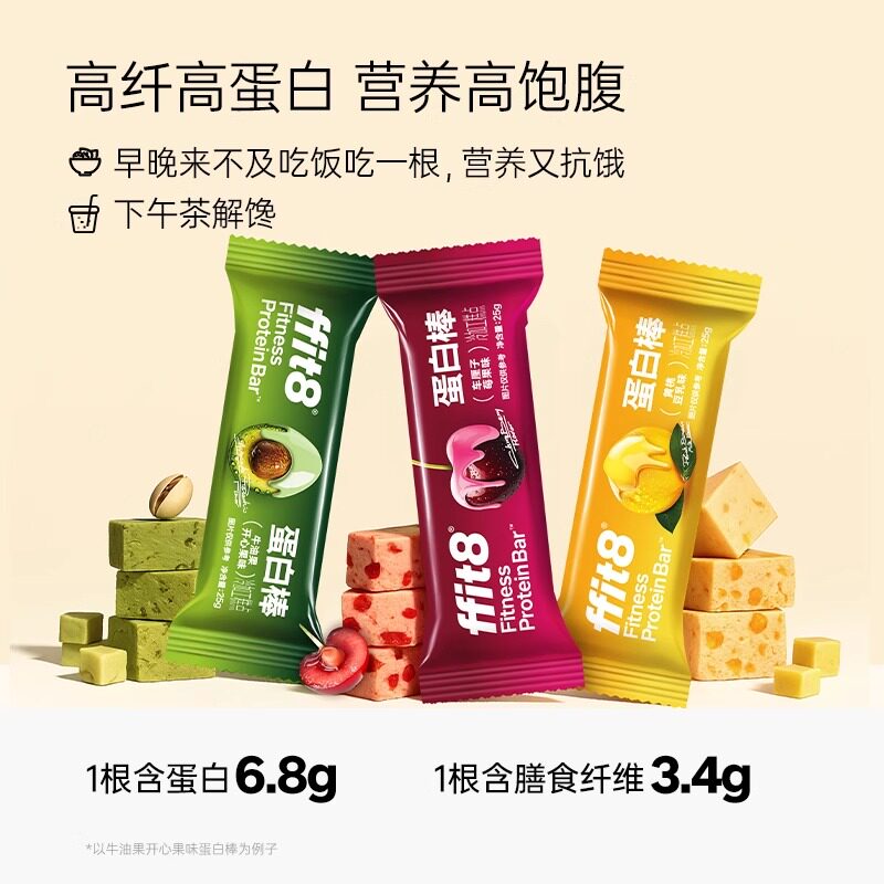 📚 ffit8蛋白棒代餐棒能量棒饱腹抗饿健康控卡零食高蛋白高膳食纤维