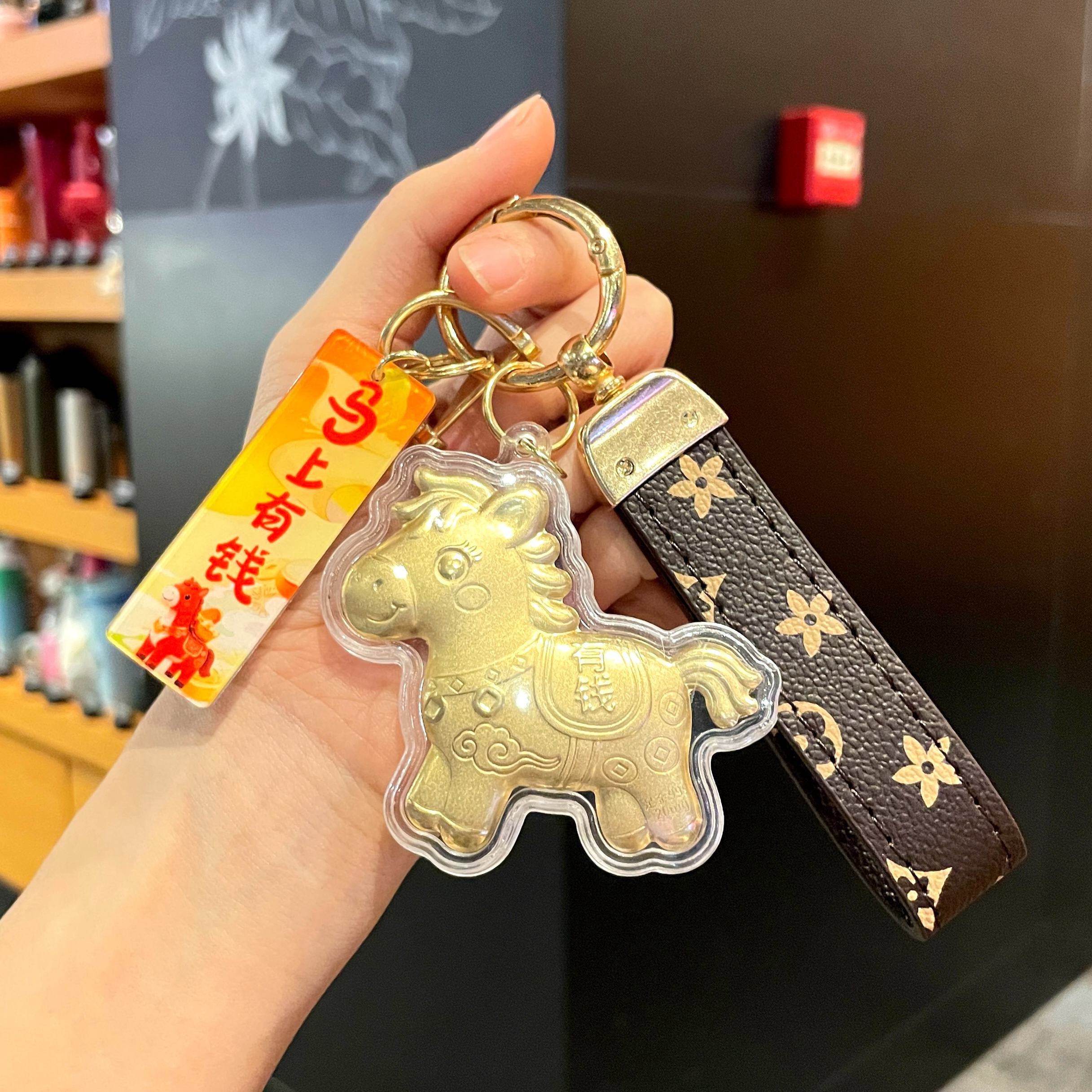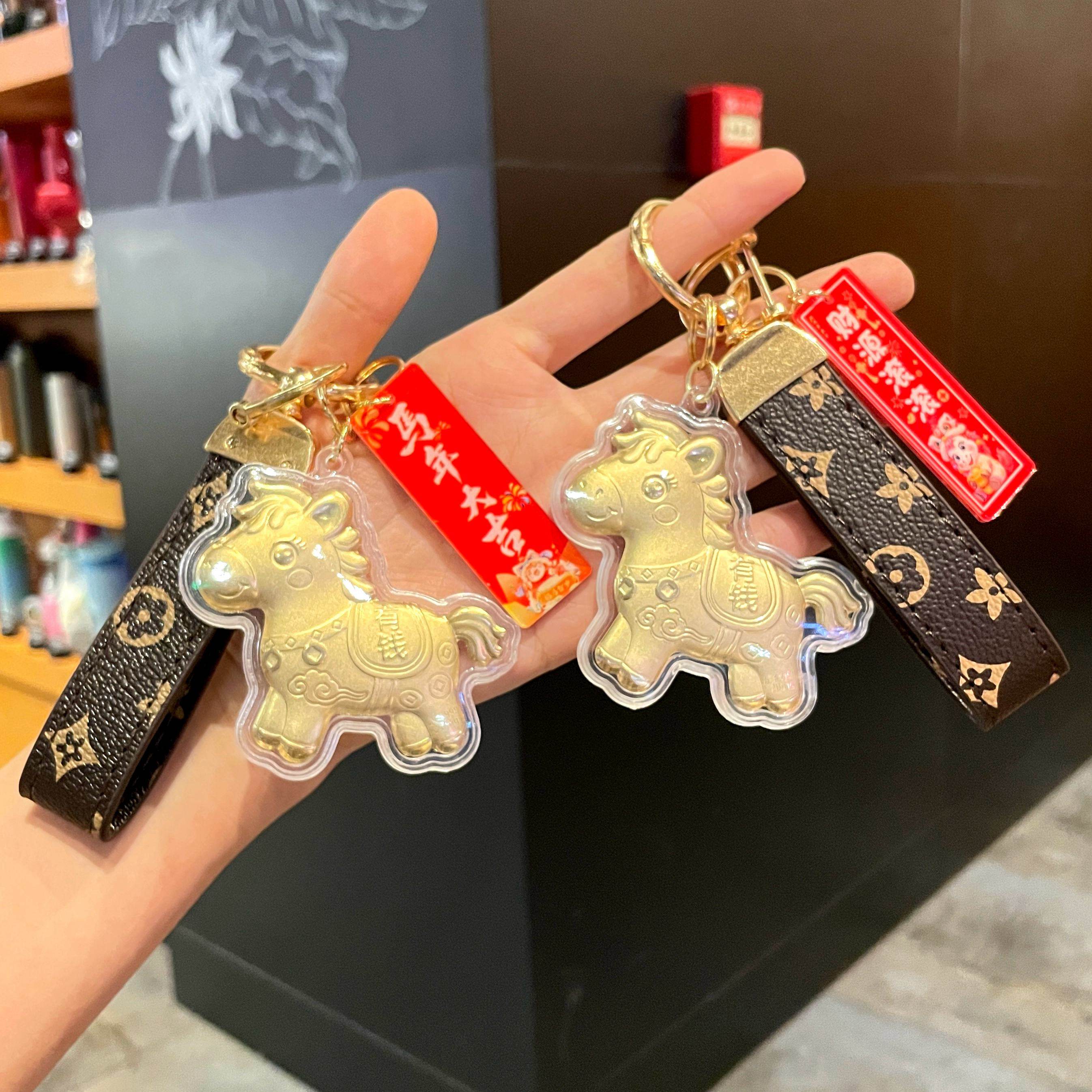 📚 2026马年吉祥物马上有钱塑箔金色小马钥匙扣手机挂链包包挂件礼品