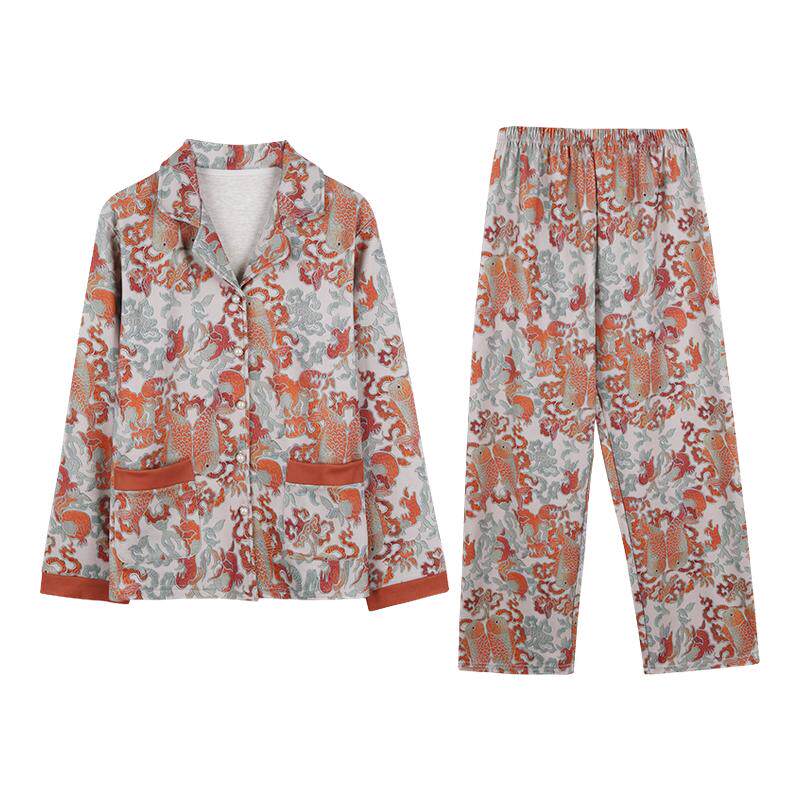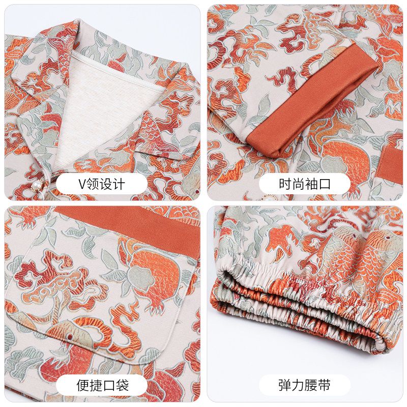 📚 猫人睡衣女款2026新款新中式羊毛蚕丝贵妇感大花磨毛家居服套装女