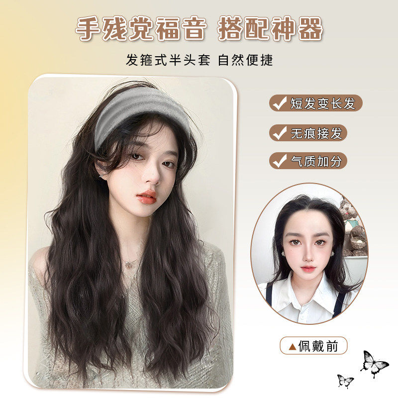 💥秋冬新宠!发箍假发一体长卷发半全头套女高颅顶帽子💖券后价40,美到心动了!