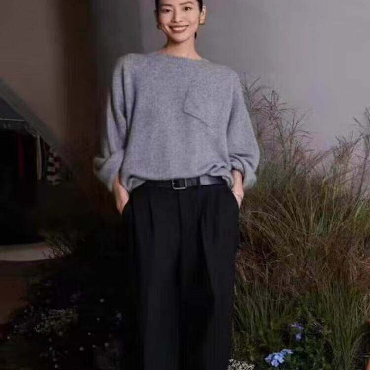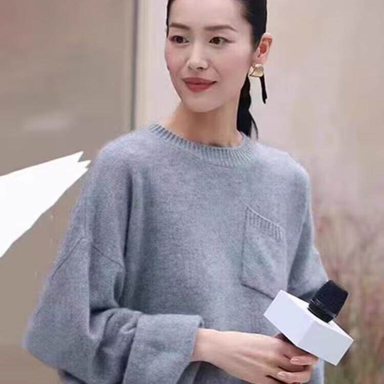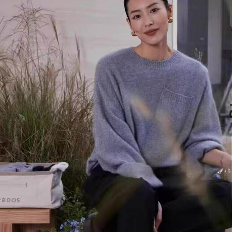 📚 大表姐刘雯同款羊绒衫女圆领baby小山羊绒毛衣套头宽松显瘦针织衫