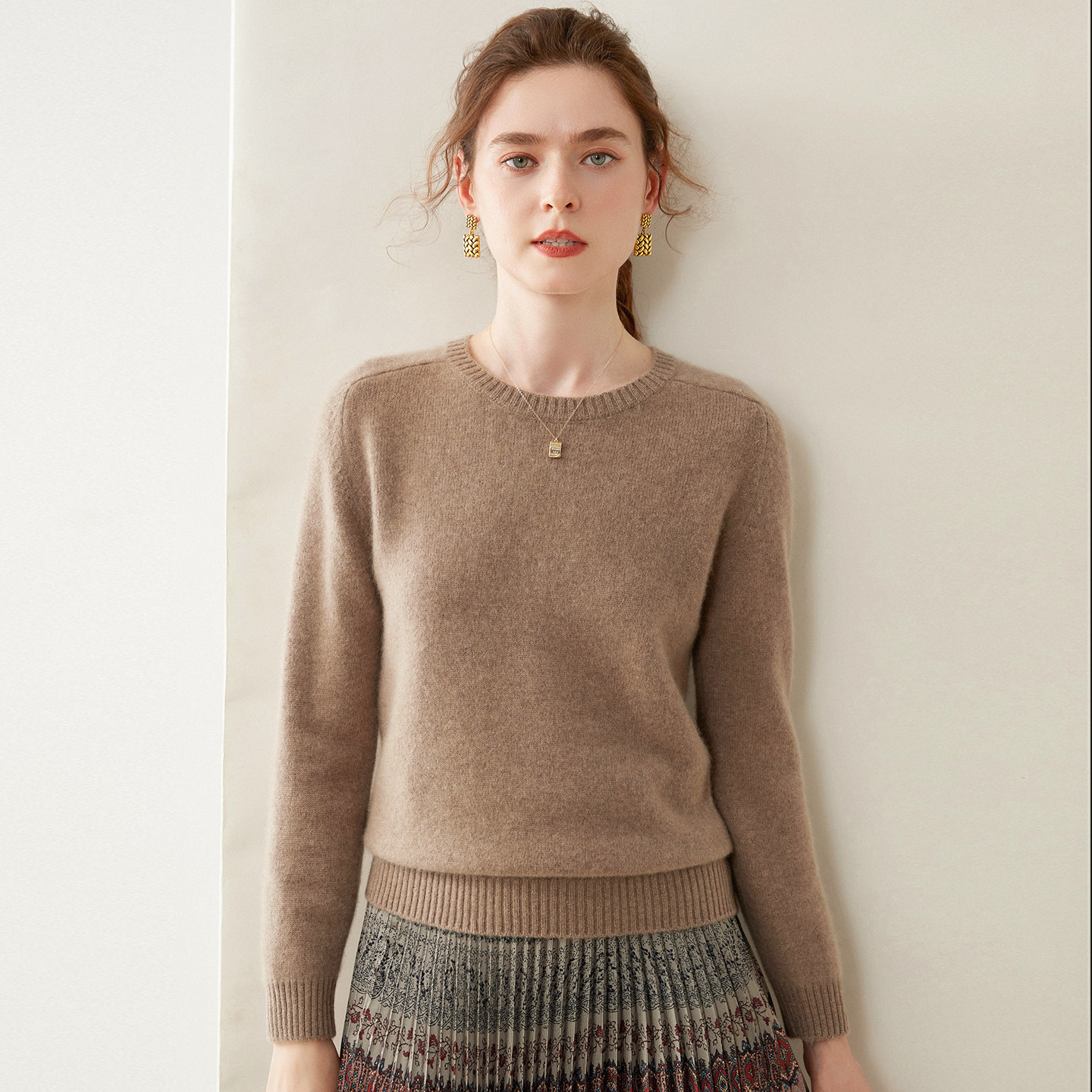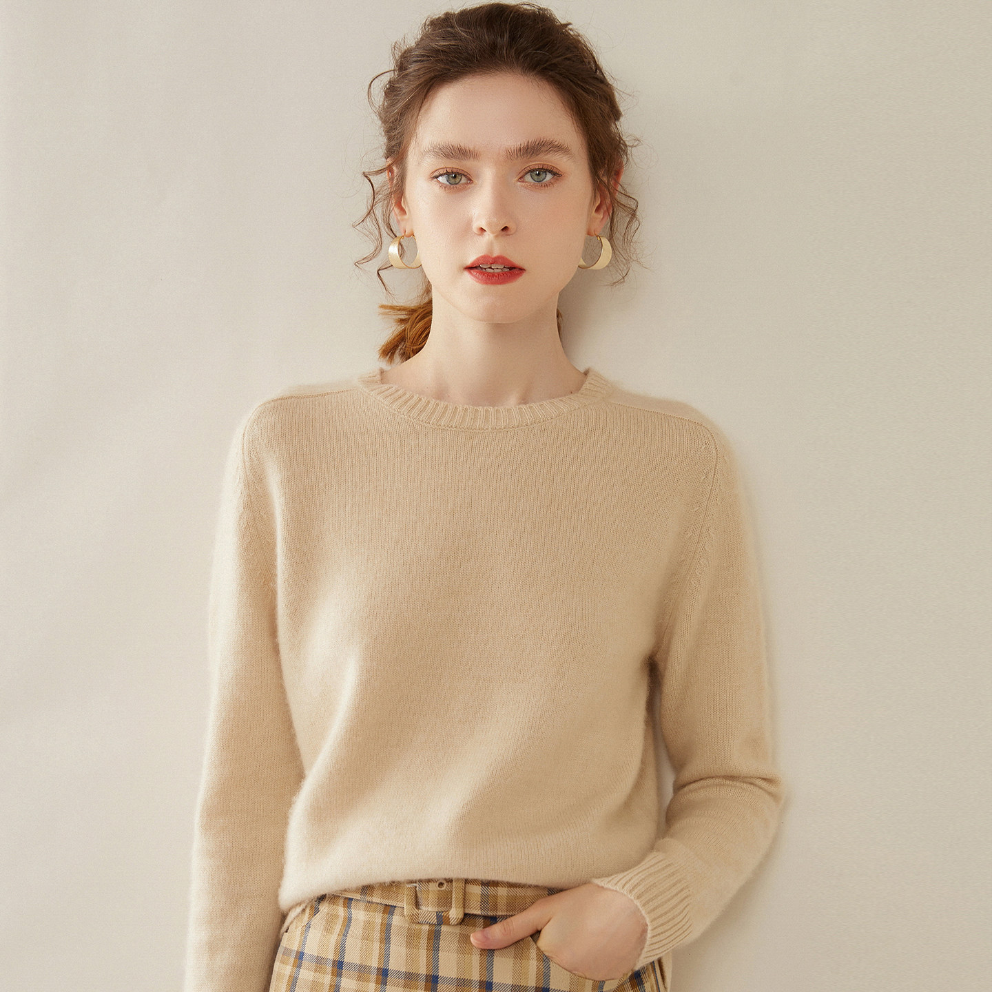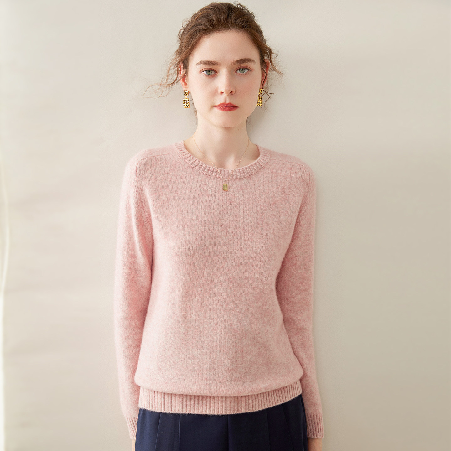 📚 清河纯圆领羊绒衫女秋冬加厚保暖套头毛衣宽松显瘦长袖针织打底衫
