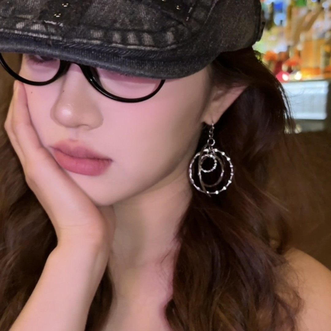 📚 复古多层锤纹耳圈吊坠耳环女2025新款清冷感气质耳钉个性夸张耳饰