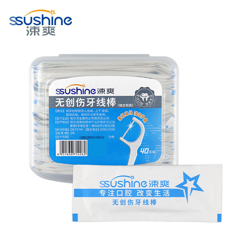 📚 涑爽无创伤牙线棒40支独立包装便携装旅行装剔牙线一次性爽牙签线