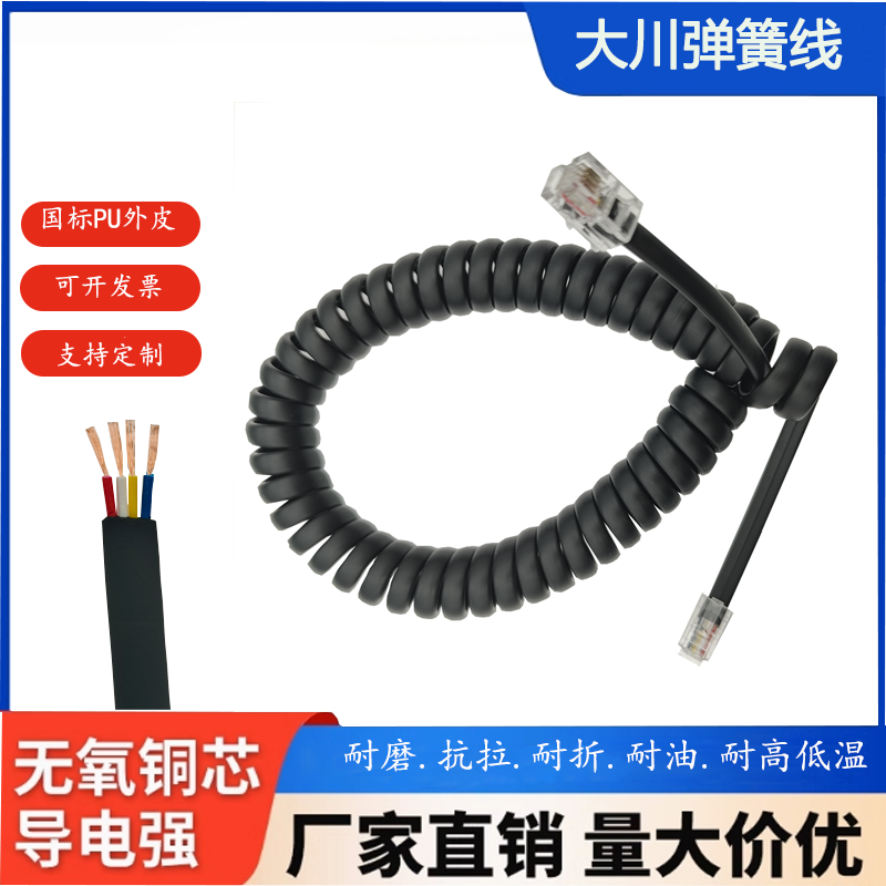 📚 四芯六芯电话线听筒弹簧线4p4c对讲机报警器连接线6p6c座机螺旋线