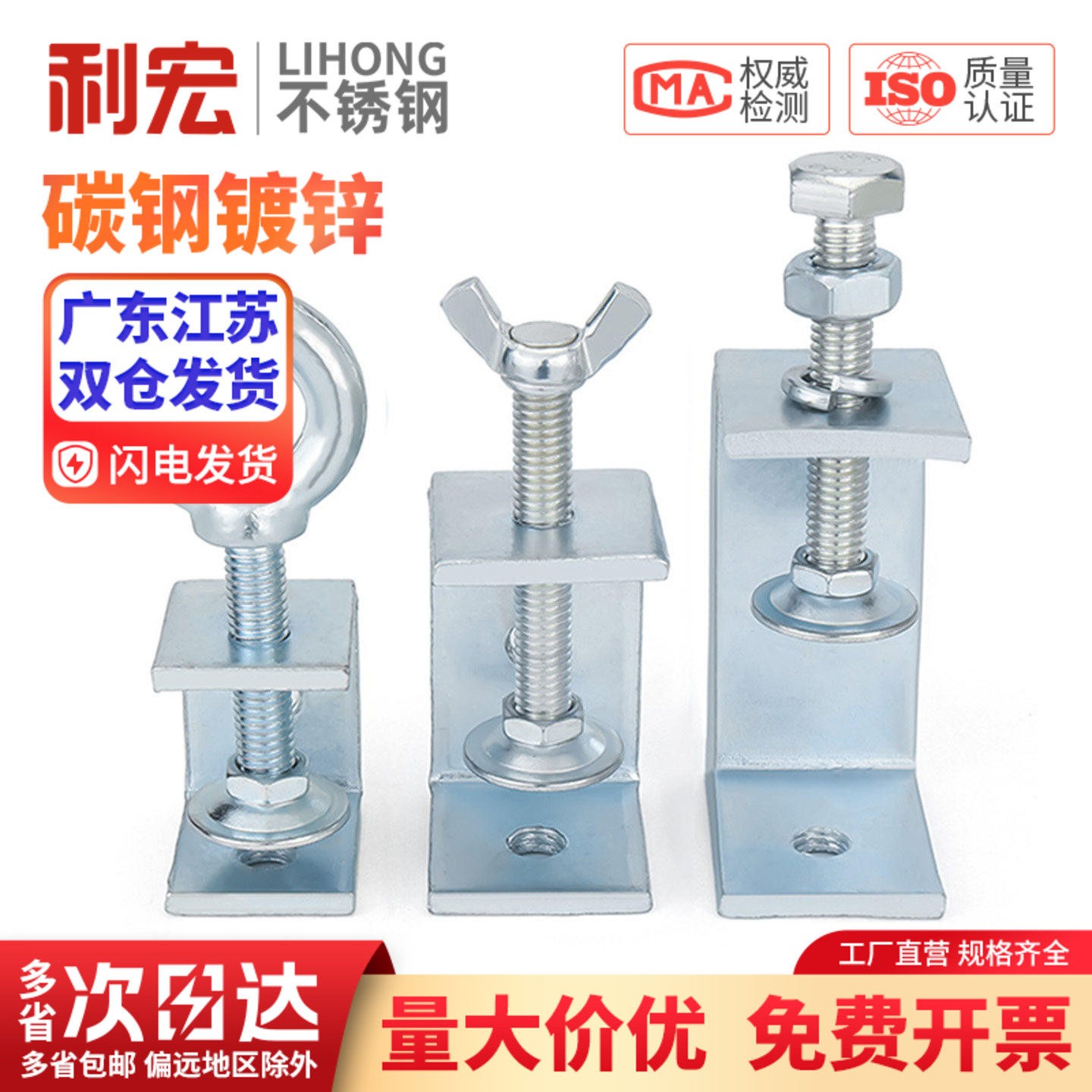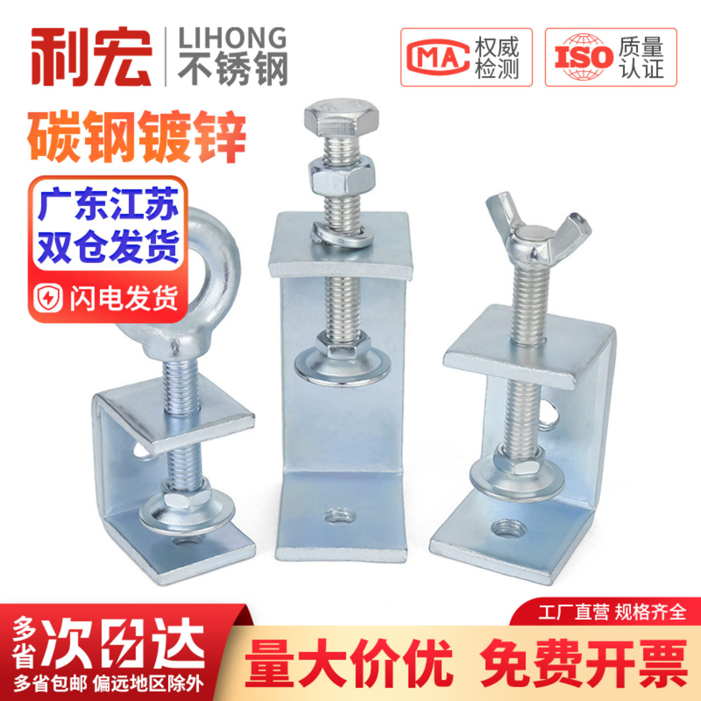 📚 铁镀锌老虎夹子管卡方形u型c型固定夹具夹紧器手拧吊环紧固夹卡子