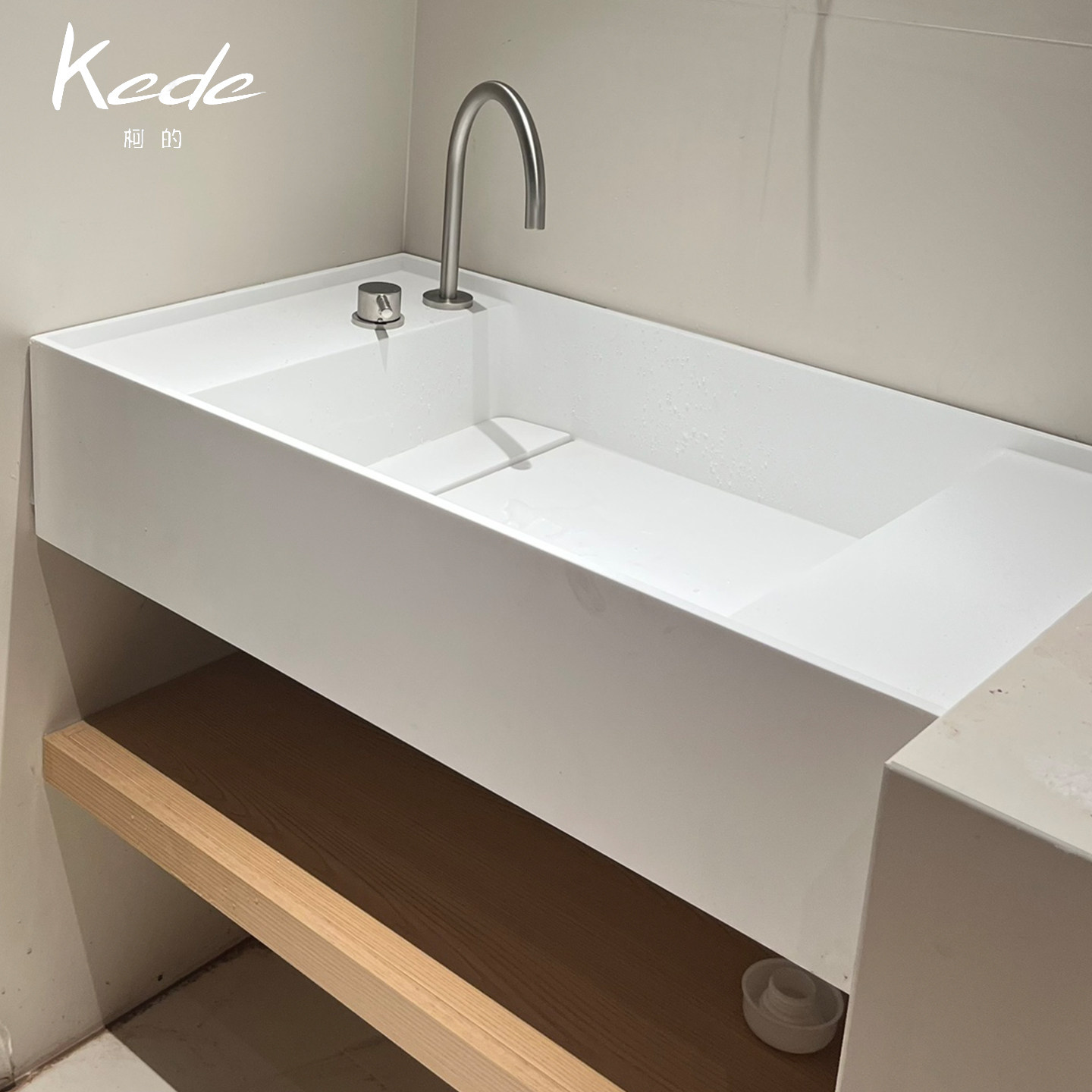 📚 corde柯的人造石杜邦可丽耐一体盆定制窄隐藏下水盆挂墙洗漱盆