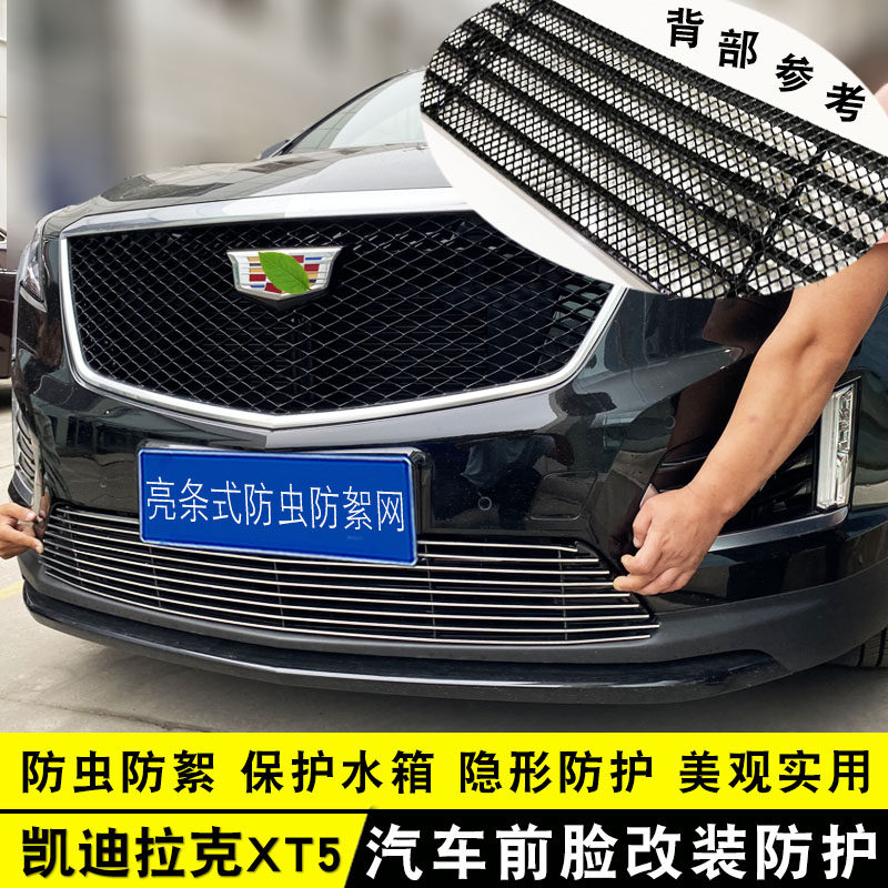 📚 凯迪拉克XT5中网外观改装防絮网配件汽车防虫网前杠专用亮条用品