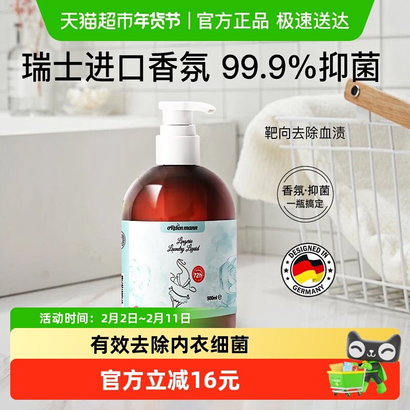 📚 德国欧德曼内裤内衣清洗洗衣液专用抑菌99.9女士去血渍留香500ml
