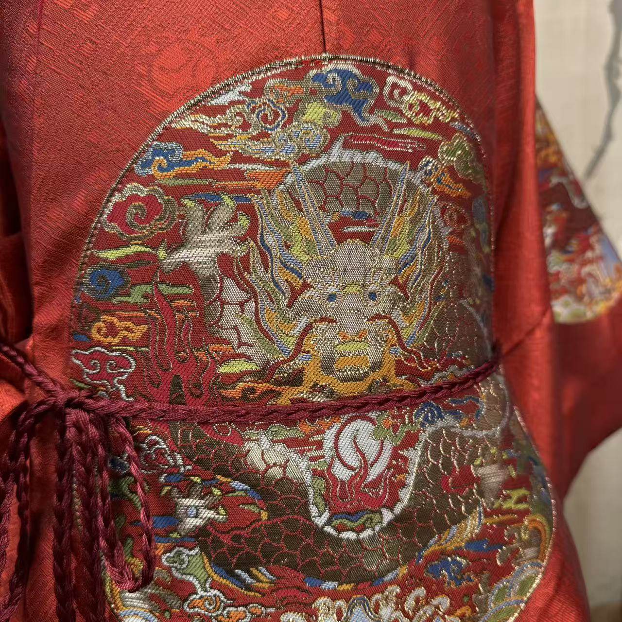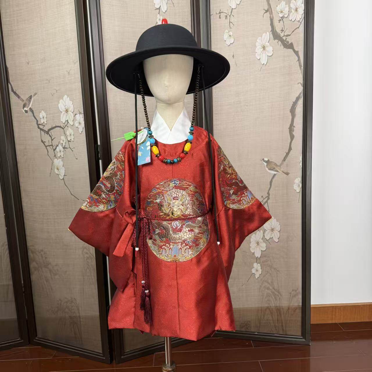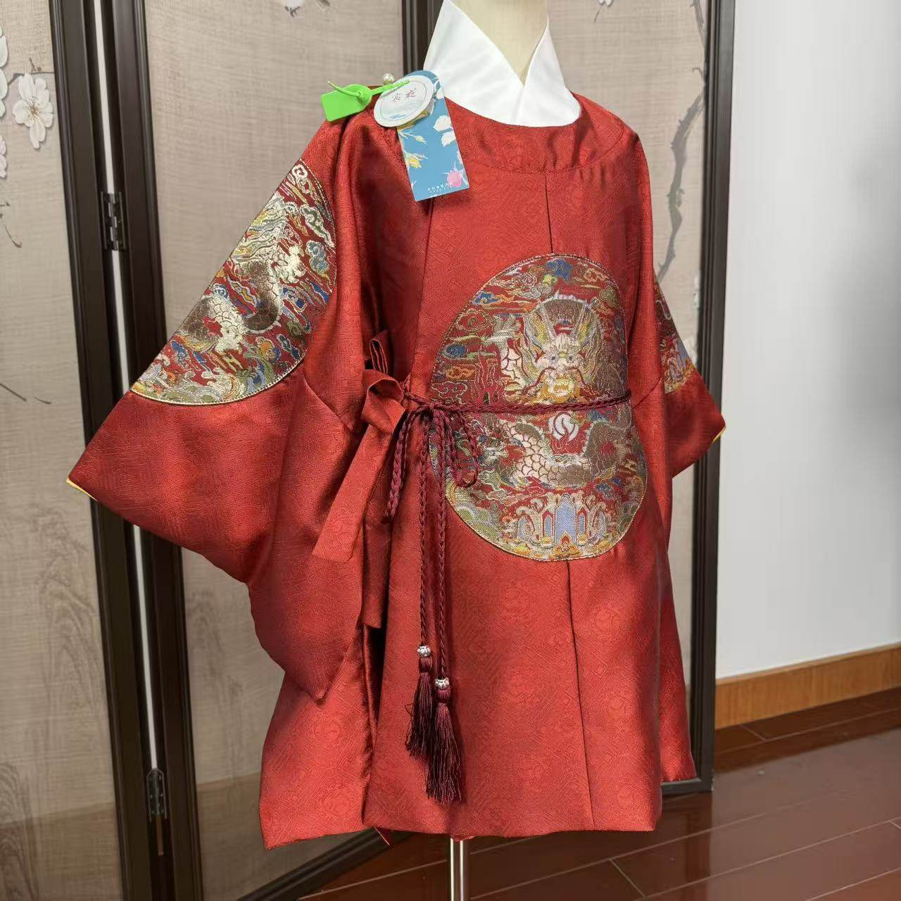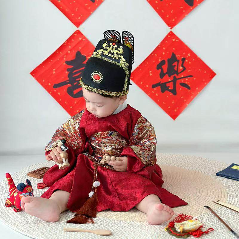 📚 儿童汉服明制圆领袍男童龙袍生日礼服抓周服高品质织金红色喜庆小
