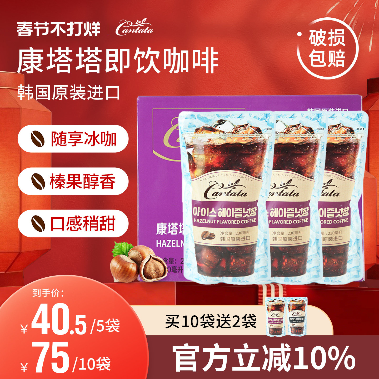 📚 韩国进口乐天cantata康塔塔拿铁榛子咖啡袋装浓缩液美式饮料