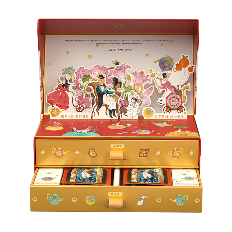 📚 布兰兔植萃轻养日夜花果茶礼盒含趣味卡片多口味乌龙茶砖创意礼物