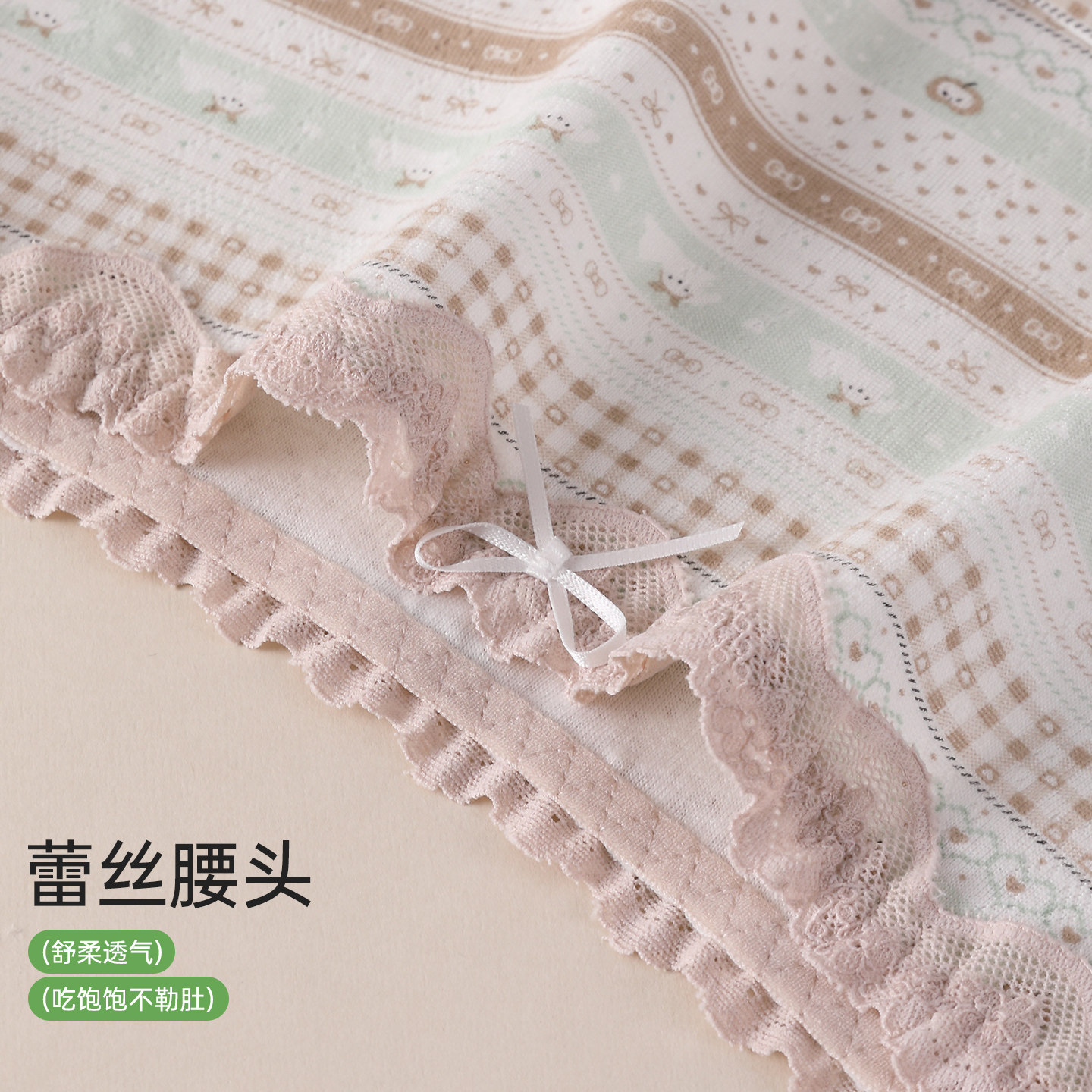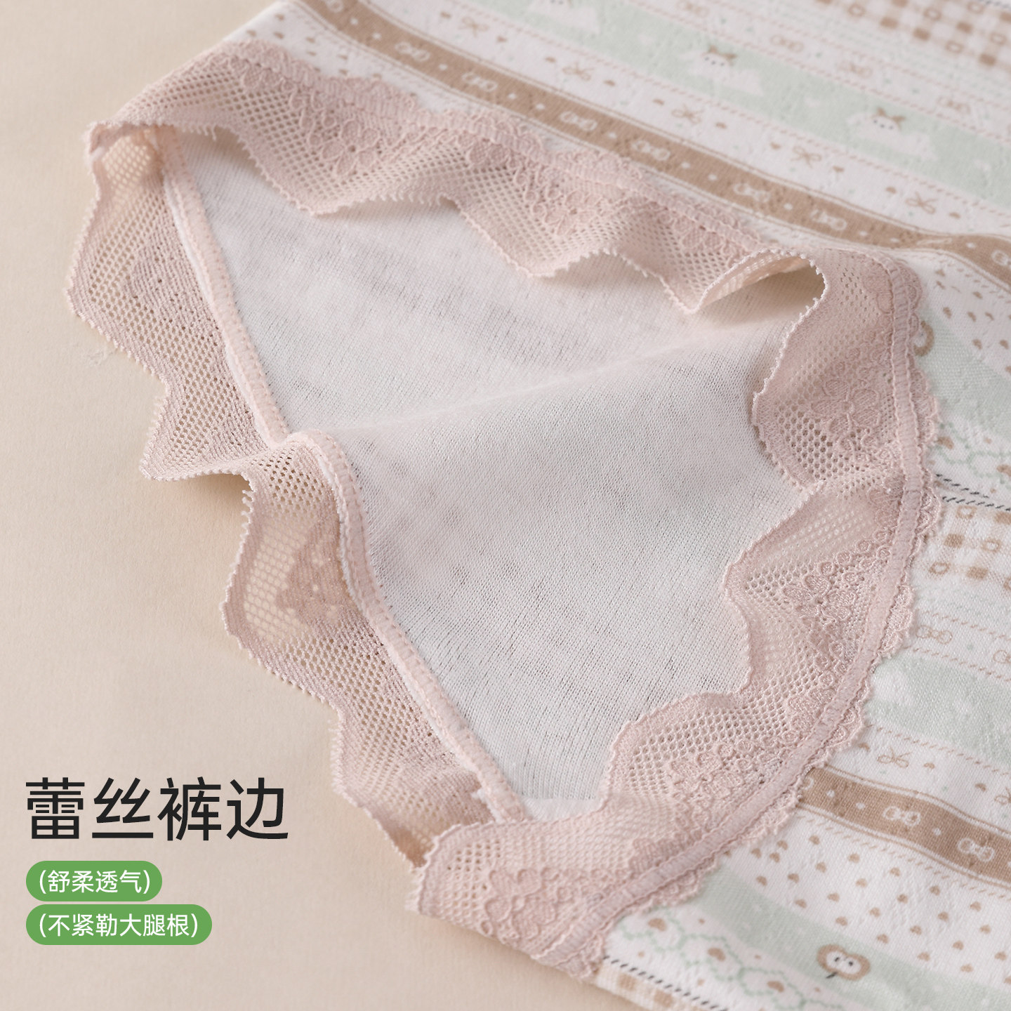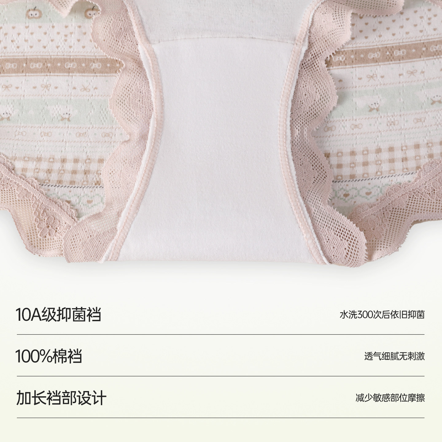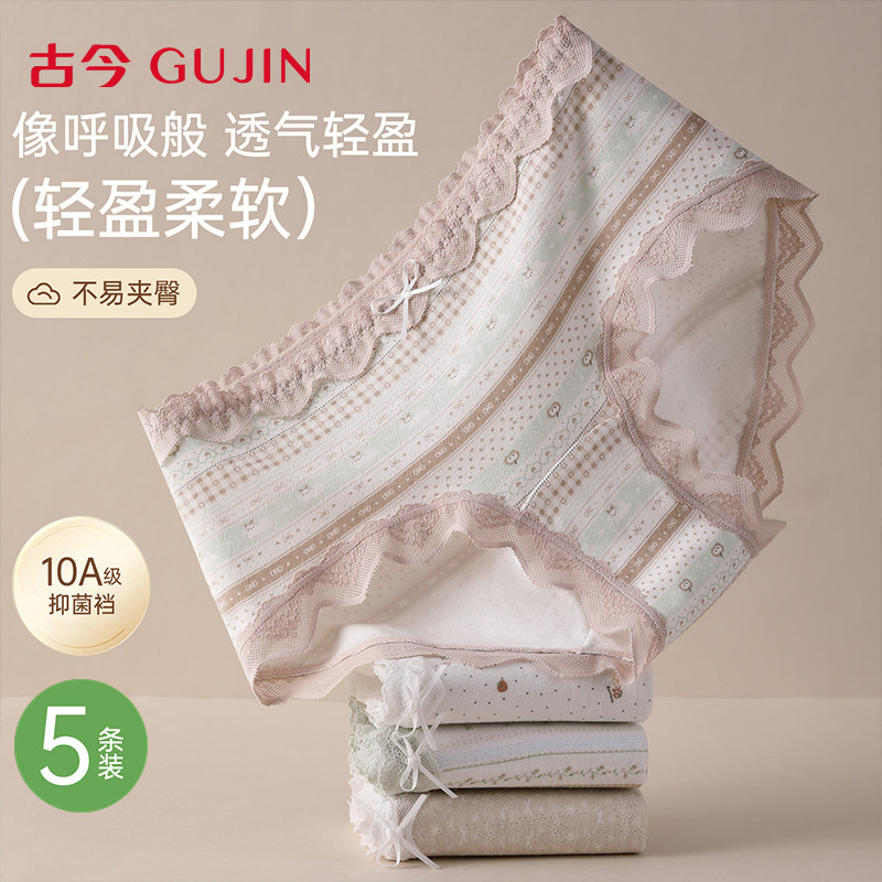 📚 古今内裤女士10A级抑菌全棉裆中腰蕾丝透气包臀不夹臀中腰三角裤