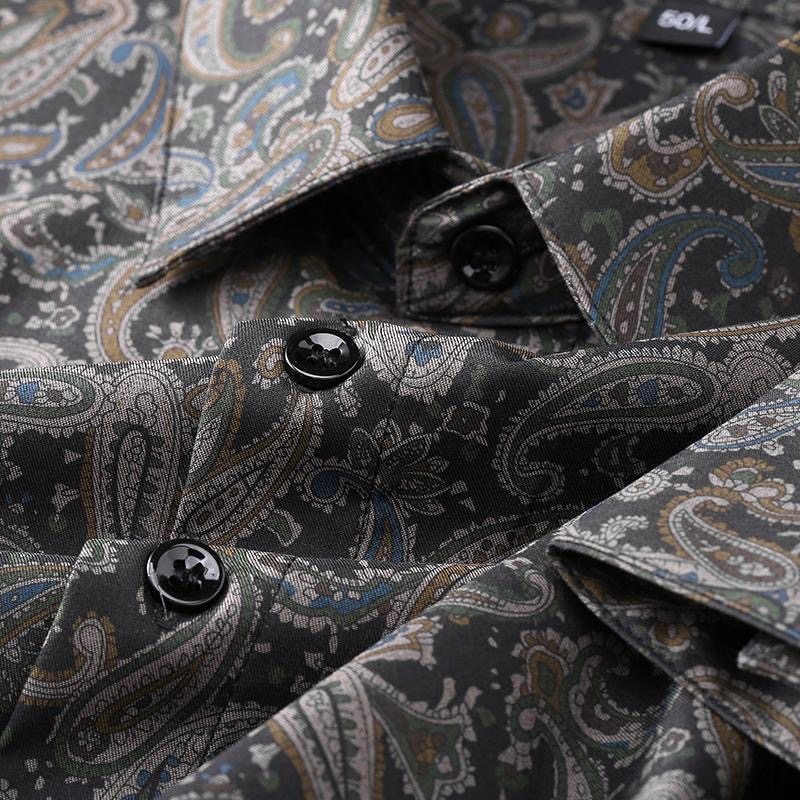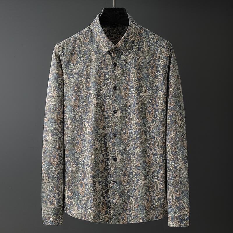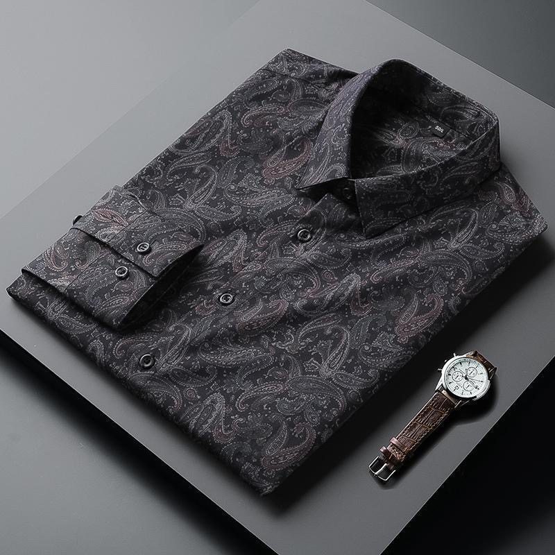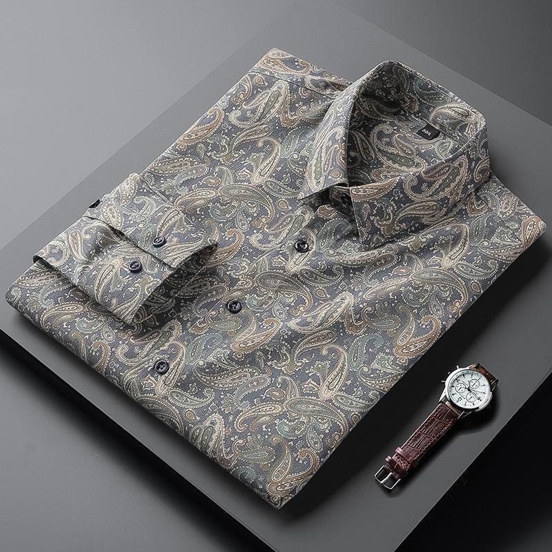 📚 免烫春秋季新款腰果花印花衬衫男士长袖修身高端时尚痞帅碎花衬衣
