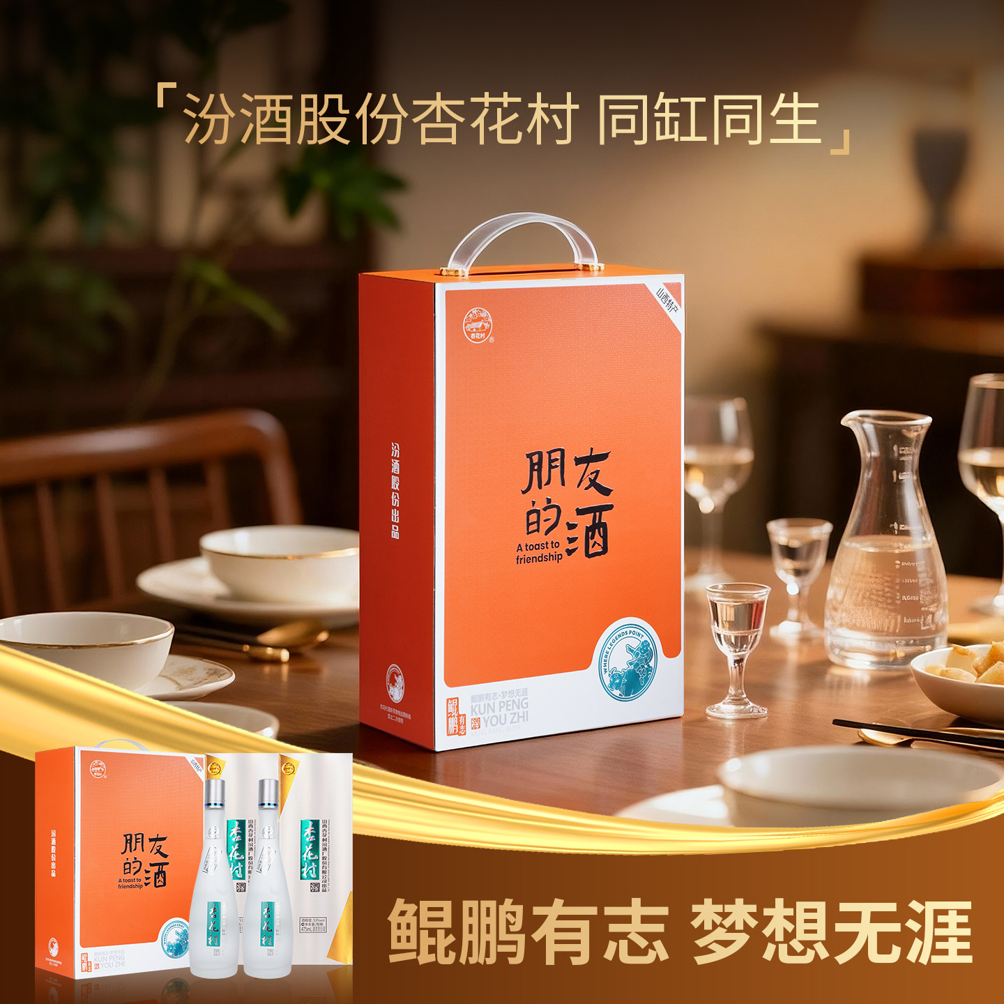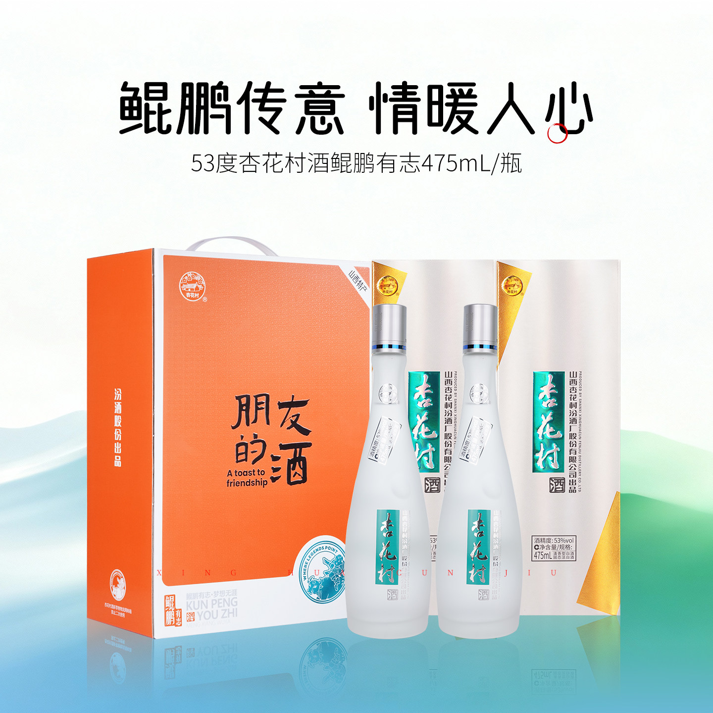 📚 【定制礼盒】山西汾酒 53度杏花村鲲鹏有志475ml双瓶装礼盒