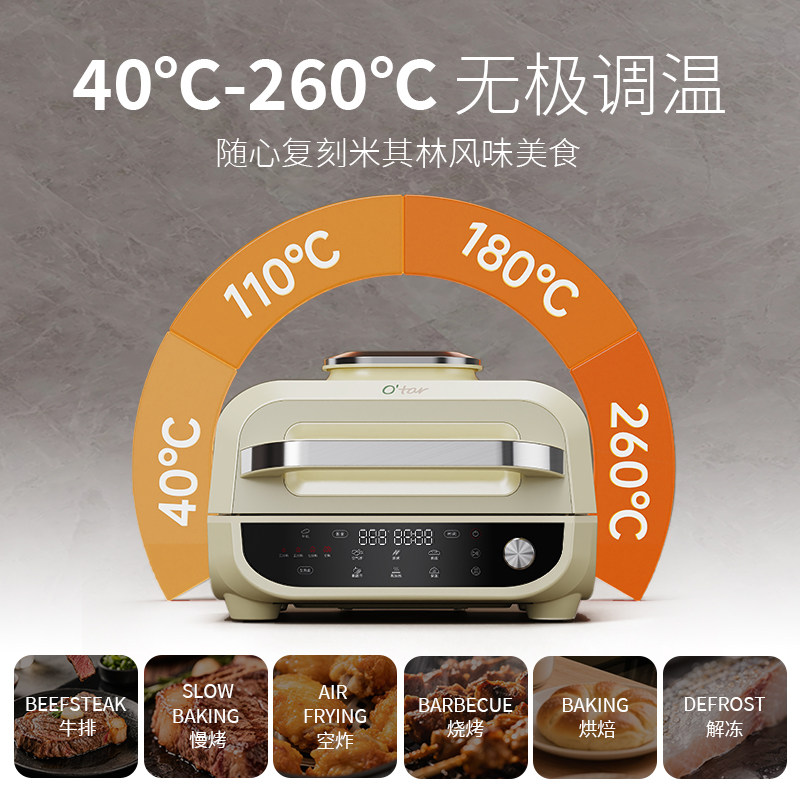 📚 O'tar 欧塔空气炸锅大容量高温烤炉多功能空气料理机专业牛排机