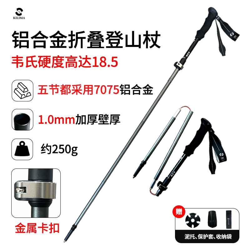 📚 KILIMA乞力马登山杖铝合金折叠7075金属卡扣男女户外专业徒步雪山