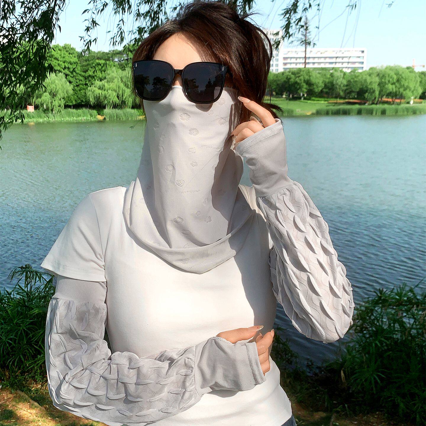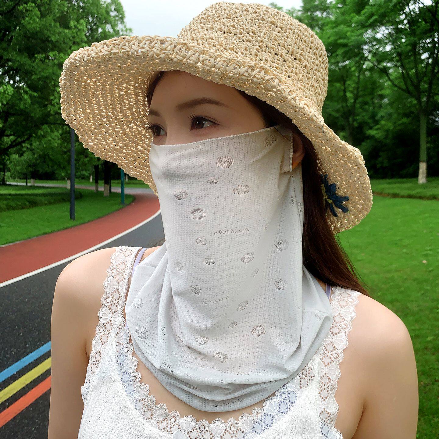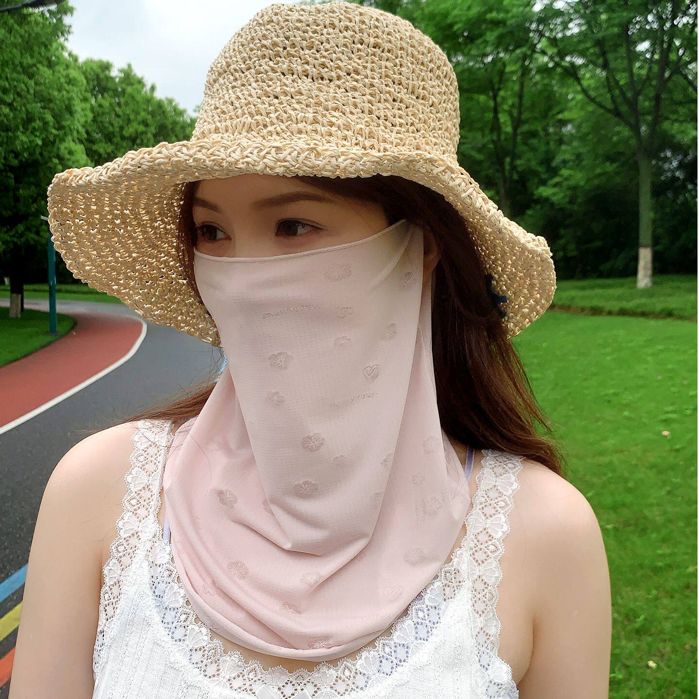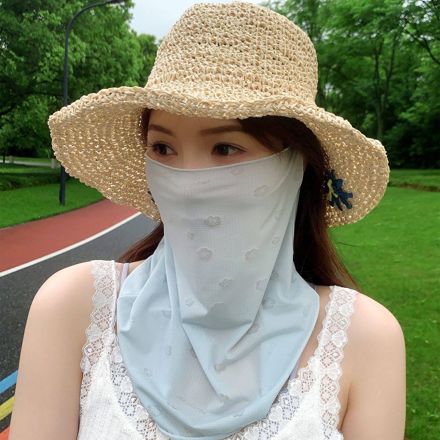📚 韩版几何图案防晒面罩女夏季遮阳防紫外线护颈脸基尼
