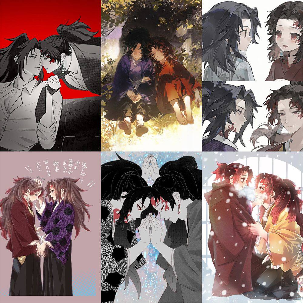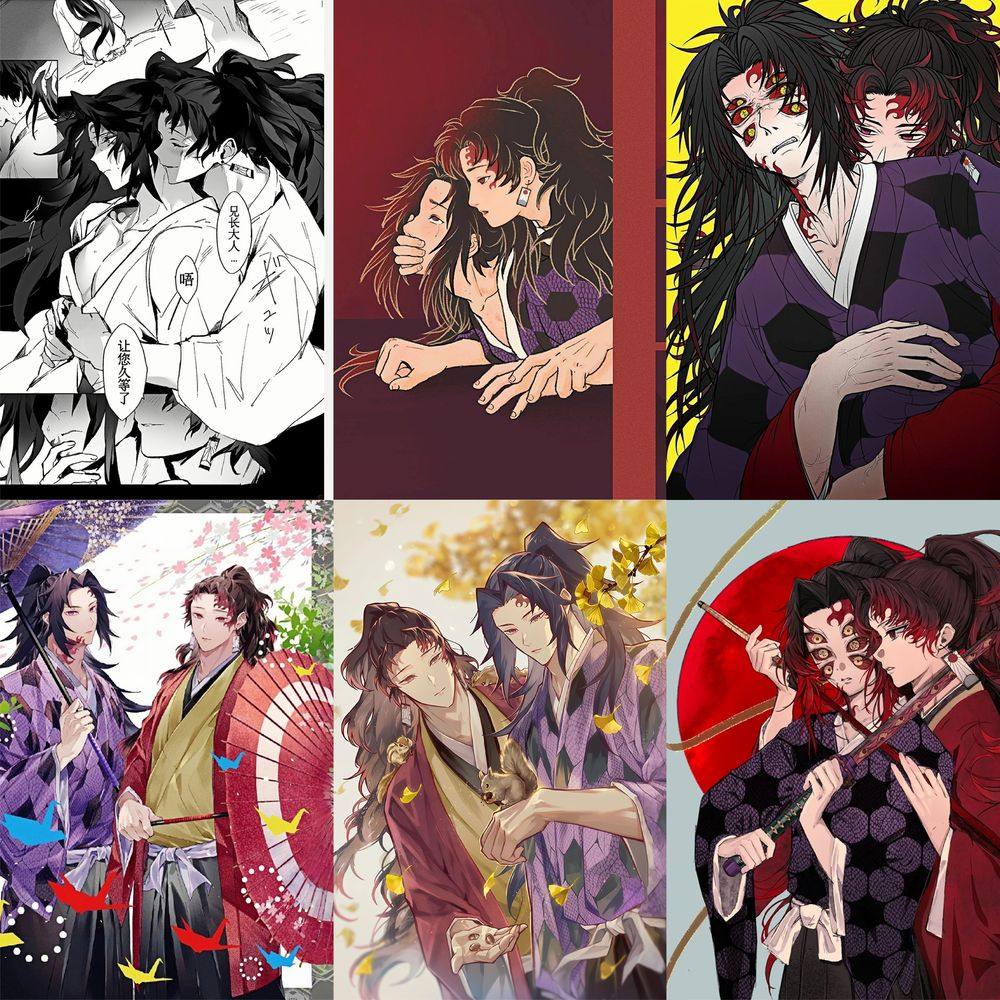 📚 189张鬼灭之刃日黑继国兄弟cp贴纸缘一岩胜同人动漫装饰防水贴画