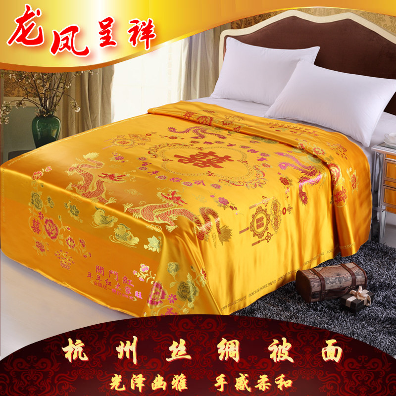📚 杭州丝绸被面真丝软缎 绸缎子被面结婚庆七彩织锦缎喜被面被里