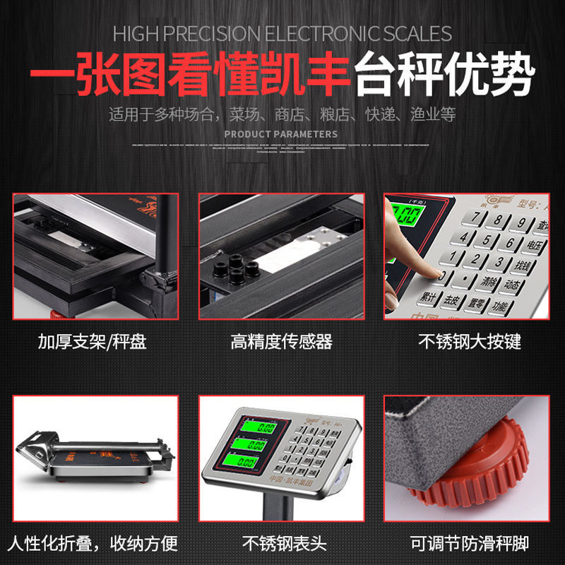 📚 凯丰电子称商用小型台秤100kg精准称重家用市斤秤300公斤工业磅秤