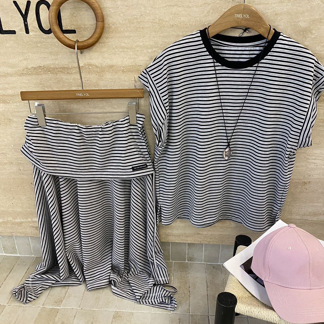 19¥ tG-#22>lD z7VA58olyOo¥ https://m.tb.cn/h.is6CnoM 韩系条纹俩件套2026夏款时尚简约休闲显瘦无袖上衣+不规则半身裙 --------------------- 【原售价】269元 【现售价】269元。