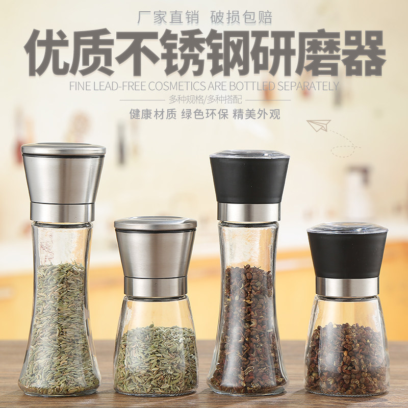 📚 现磨胡椒研磨器不锈钢家用手动碾磨花椒粉器电动瓶碎海盐白黑颗粒