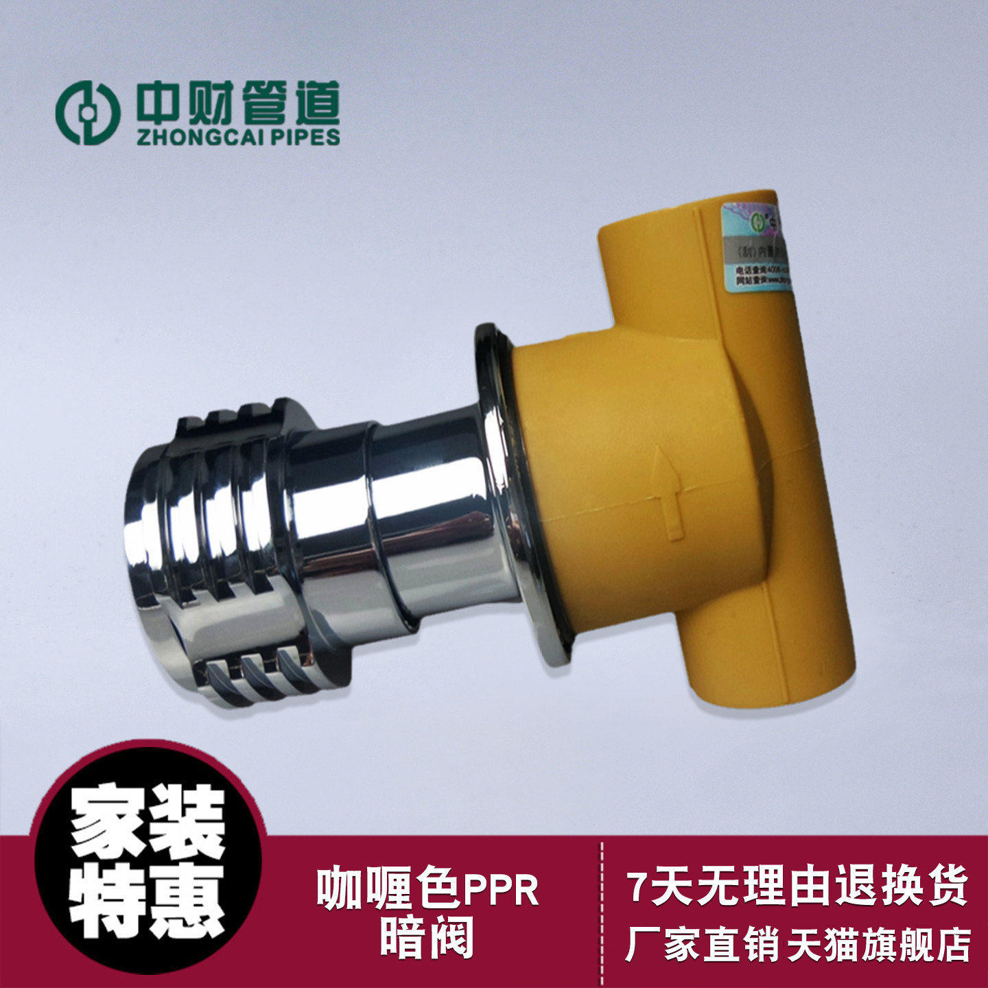 📚 中财管道PPR咖喱色冷热水快开陶瓷阀芯大流量20/25暗阀暗装阀门