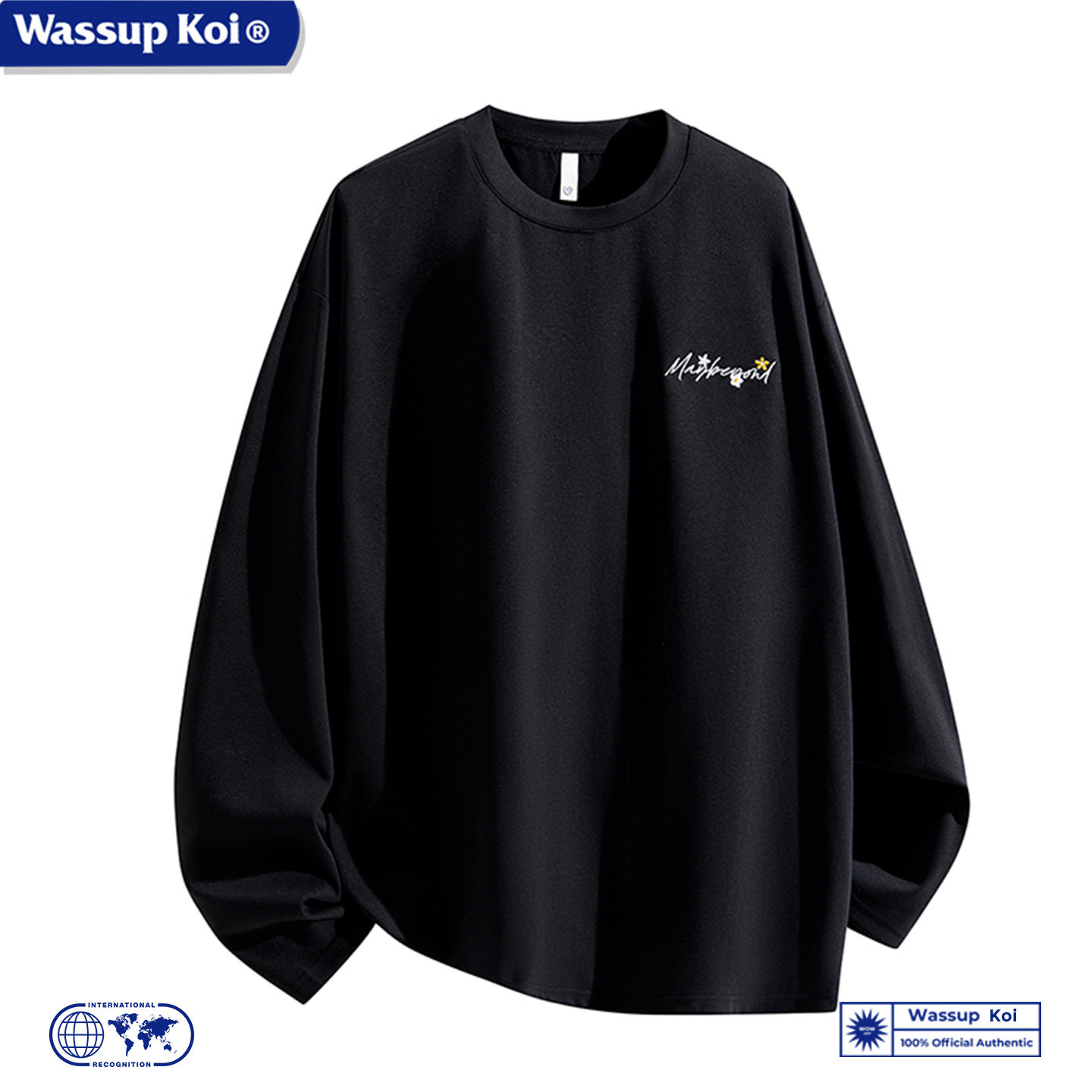 📚 WASSUP KOI联名秋季时尚长袖T恤重磅迪桑麻宽松休闲圆领印花上衣