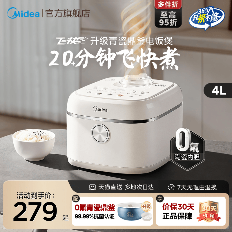 📚 美的飞快电饭煲奶油风大容量5升4-5-10人用电饭锅正品官方旗舰店