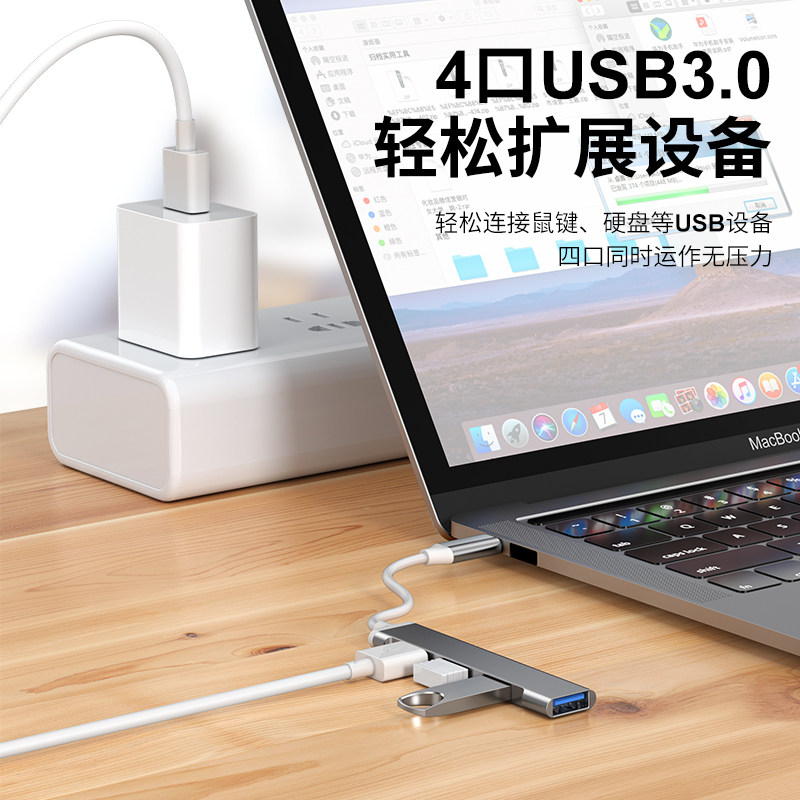 📚 BS拓展坞usb插头多口一分二四集分线器typec延长线hub3.0外接u盘带供电转接头转换器笔记本电脑多接口扩展器