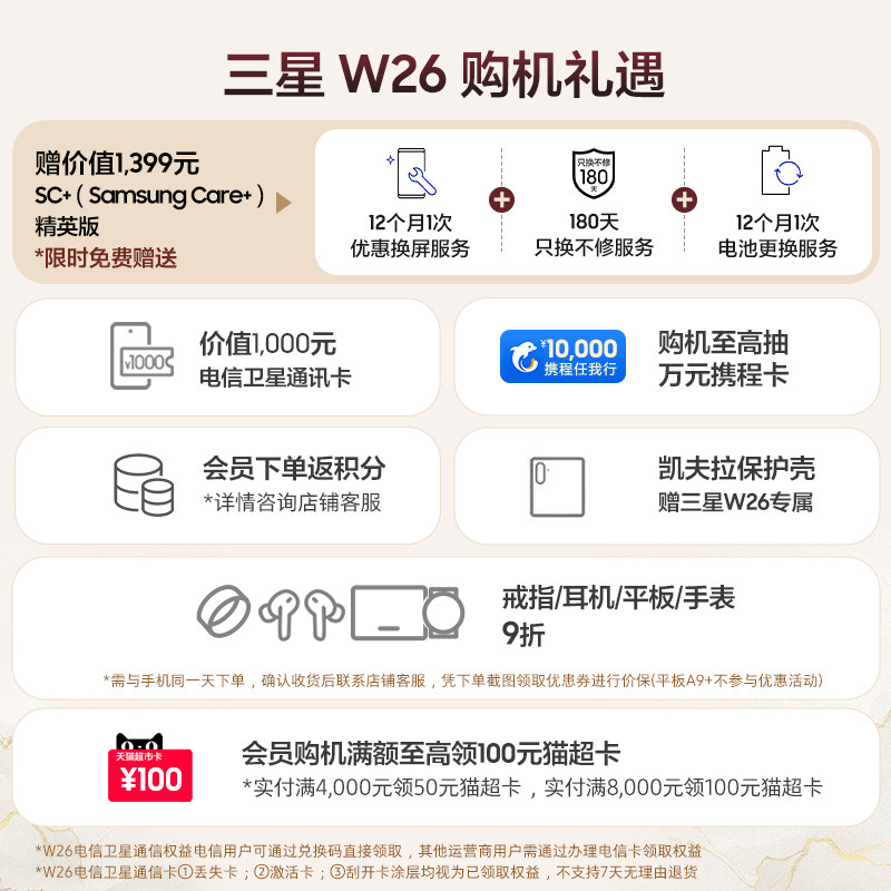 📚 【立即抢购】Samsung/三星 W26心系天下高端折叠屏4.2mm超轻超薄大屏商务AI智能手机三星官方旗舰店